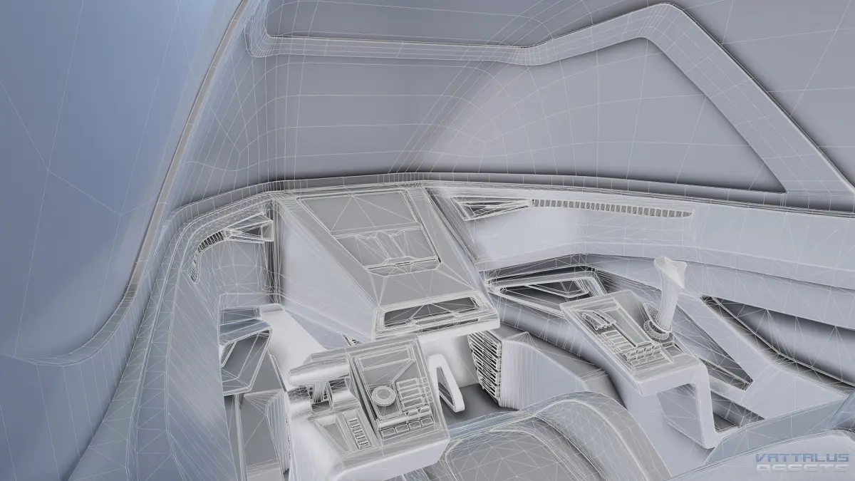 AAA Quality, highly detailed futuristic sci-fi cockpit, perfect for any space-sim or VR experience. With 4K resolution PBR Textures.