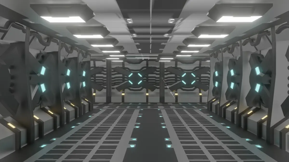This high-quality sci-fi corridor is perfect for futuristic spaceship interiors, space station levels, or cyberpunk environments. The design features a modular structure, making it easy to integrate into both games and virtual reality scenes.