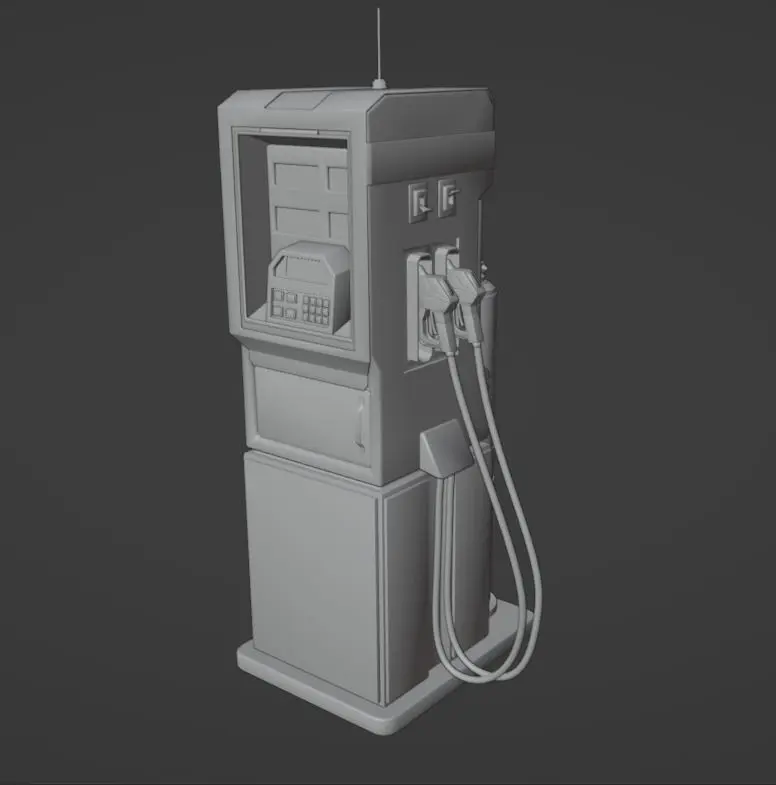 A simple gas pump for fuel and gas at a sci fi gas station for sci fi carssci-fi very sci-fiNot really low poly, but not really high poly kinda in the middle Whether you're creating a futuristic cityscape or an abandoned, post-apocalyptic landscape, this gas pump is the perfect addition. The attention to detail in this model, from the rusted metal to the exposed wiring, will truly make it stand out. With its sci-fi cyberpunk twist, it's sure to be a conversation starter in any scene.