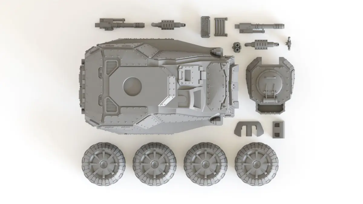3D model of a Sci fi APC created in Blender 4.1. Perfect conversion for Guard Armies!