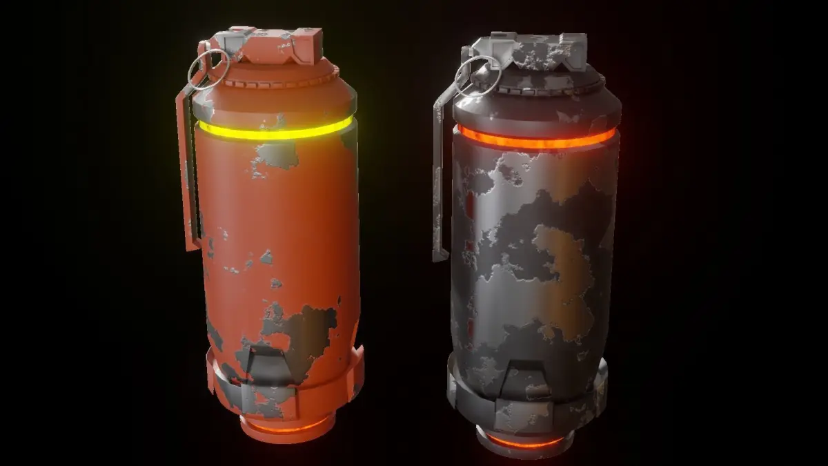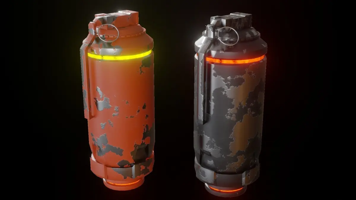 Inside The Asset Package, There are 4 Grenades and 2 Bombs with Procedurally Generated Textures inside Blender (.blend) folder. All Bombs and Grenades are separately exported in .fbx and .obj as well as two versions of each asset, with bevel and without.