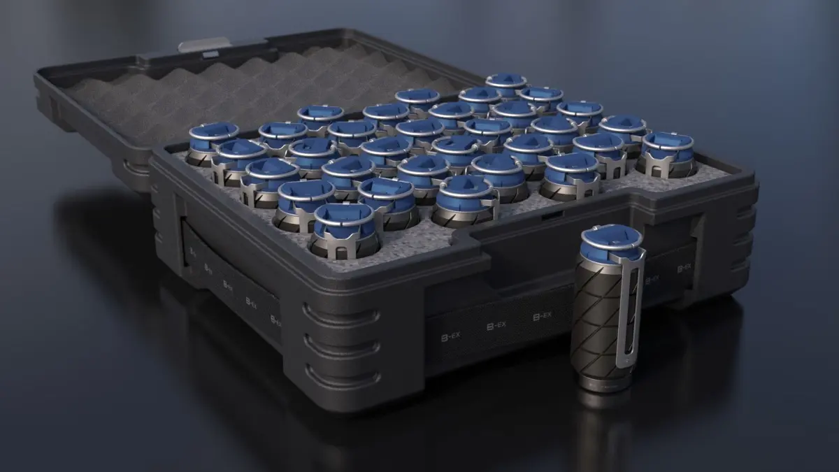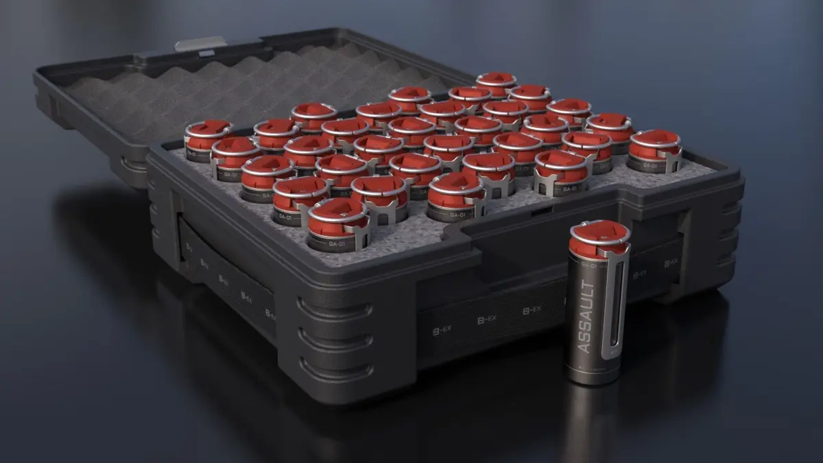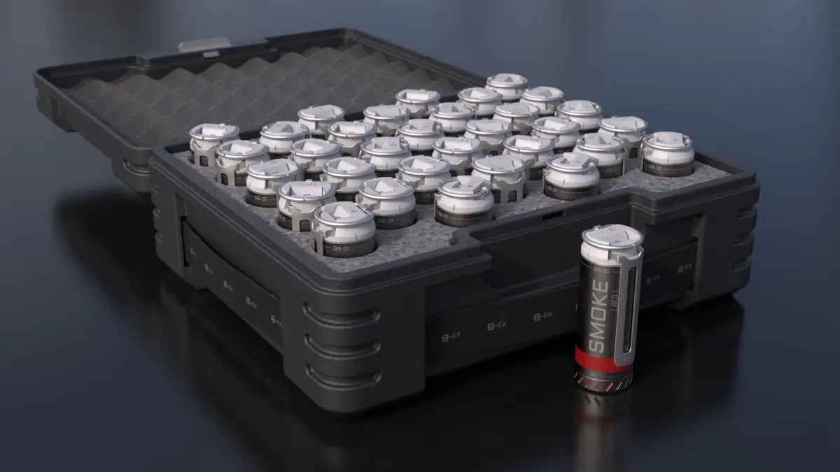 High-poly Sci-Fi grenade models and transport container for 32 grenades.Fragmentation, smoke, incendiary and assault(HE).