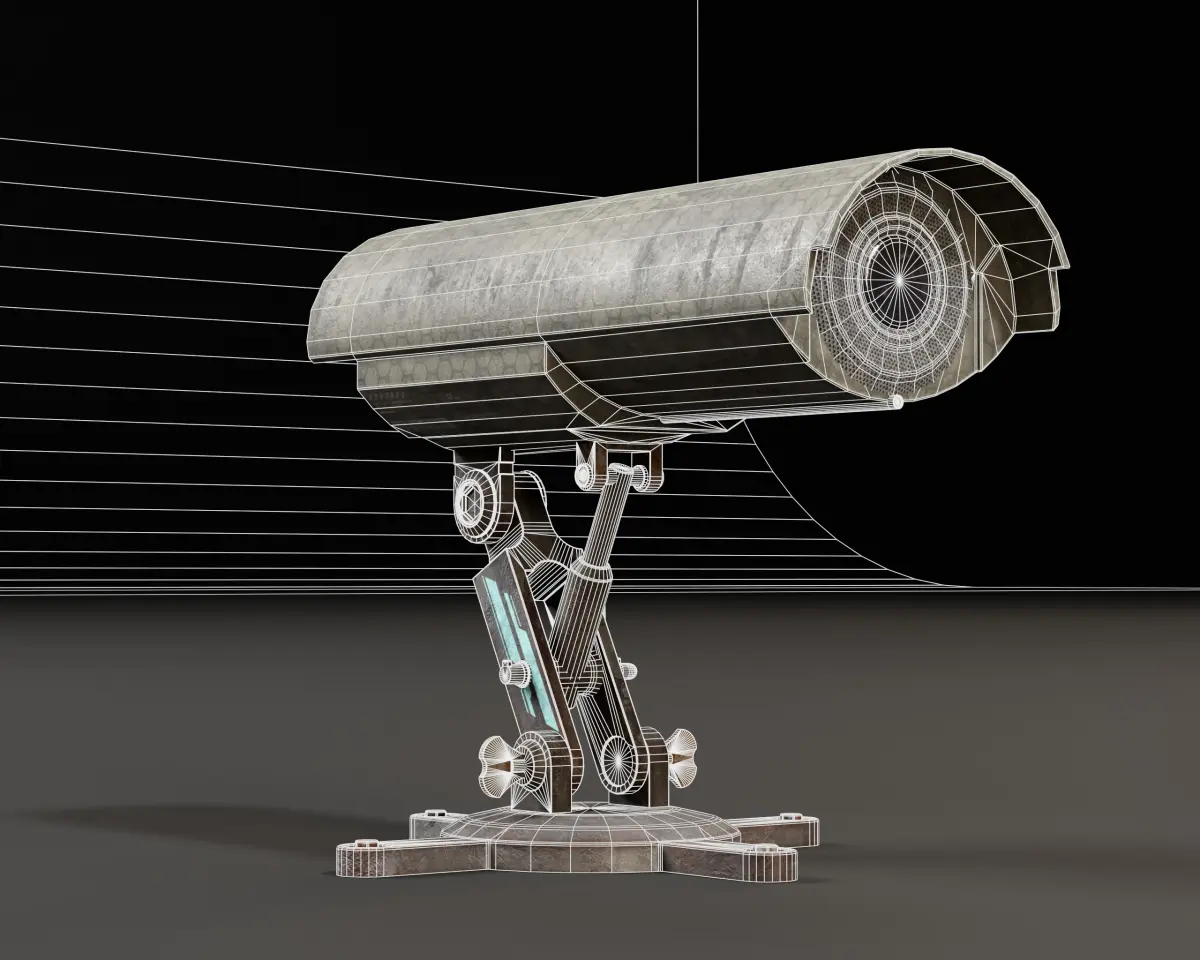 Sci-Fi Grounded Security Camera 3D Model. This model contains the Sci-Fi Grounded Security Camera itself