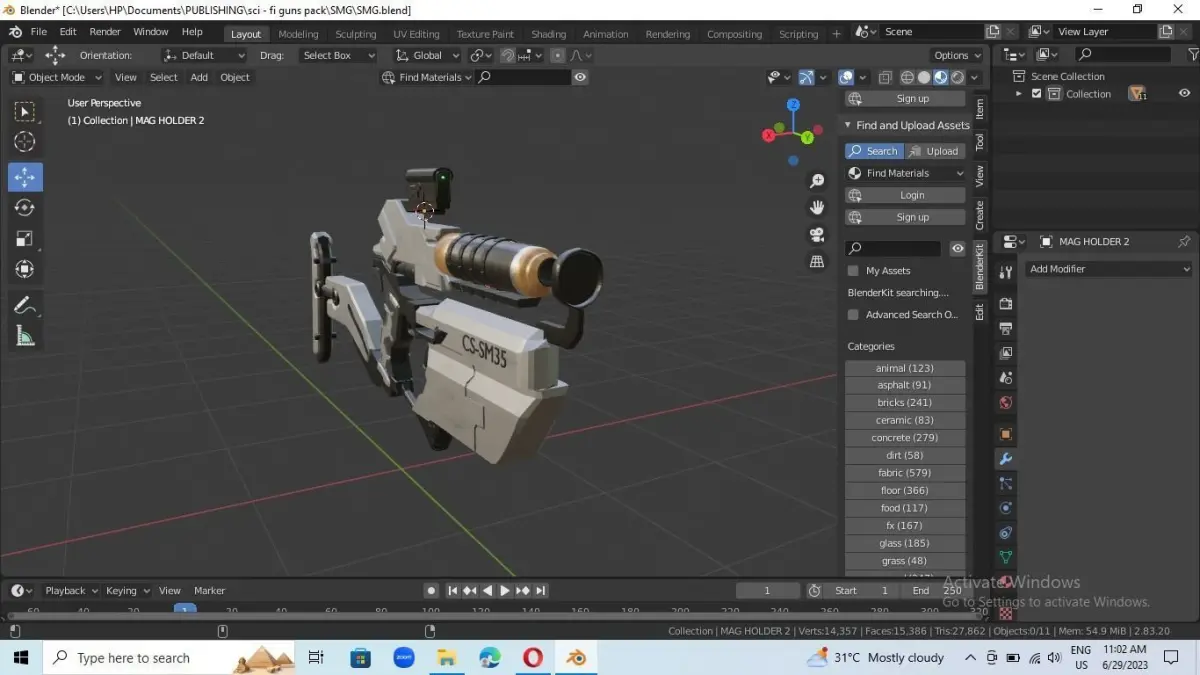 This is a 3D model of a sci-fi SMG gun that is perfect for any futuristic shooter game. The gun has a sleek and ergonomic design, with a metallic black finish and . The gun features a holographic sight, a silencer, and a laser pointer for enhanced accuracy and stealth. The gun also has a detachable magazine and a folding stock for easy storage and portability. The model is highly detailed and realistic . The model is compatible with Unity . Whether you need a weapon for your sci-fi hero or villain, this SMG gun will add some style and firepower to your game or envirnment.