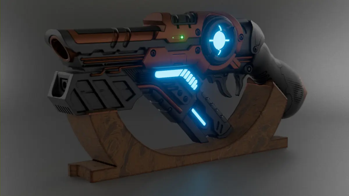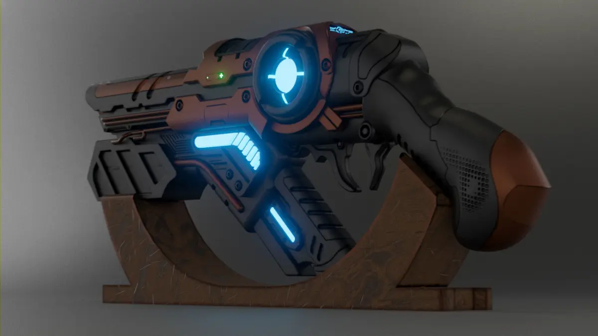 This is a Sci-fi Gun Model Concept art, Created in Plasticity 3D and Rendered in Blender There are Blender Files and plasticity 3d Files are Provided and The Gun is Textured with shader material in blender, You can also 3D print the model.