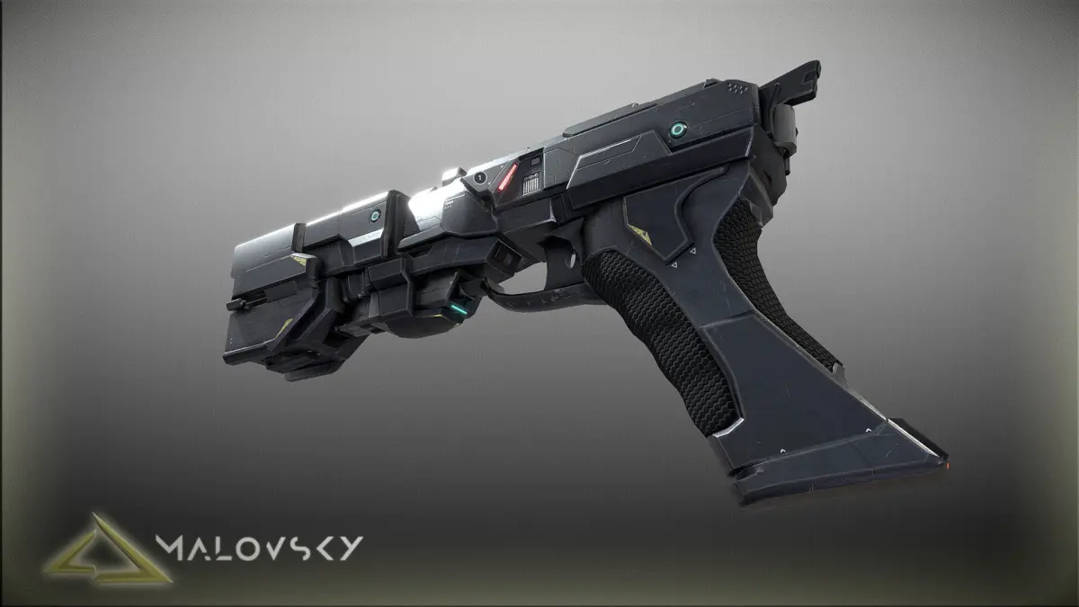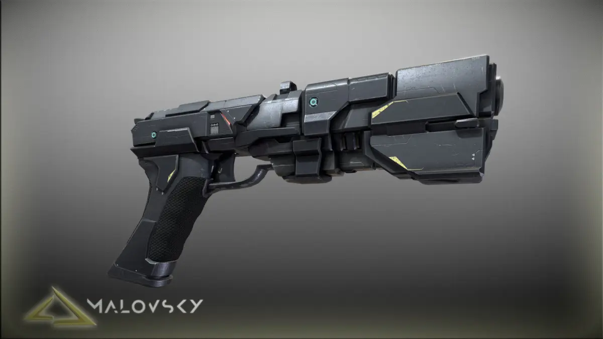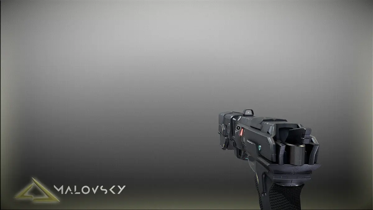 The gun of the near future. 9mm cartridges There are 12 explosive cartridges in a clip. Optical Sight x 1.5 This kid is a great friend of the owner, will not let you down even with long shootings, there is also stabilization of recoil with a smooth shutter. And there is also an animation of the shot, pulling the trigger and releasing the sleeve.