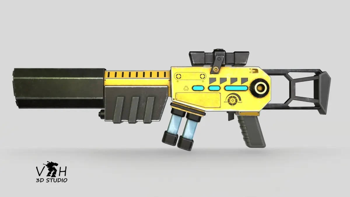 Sci-fi gun designed and modeled by our studio. Quite a unique model. Modeled in maya 2018. Textured in Substance Painter (PBR 4k Textures(1 uv set ). Rendered in marmoset toolbag3.