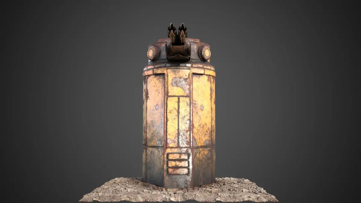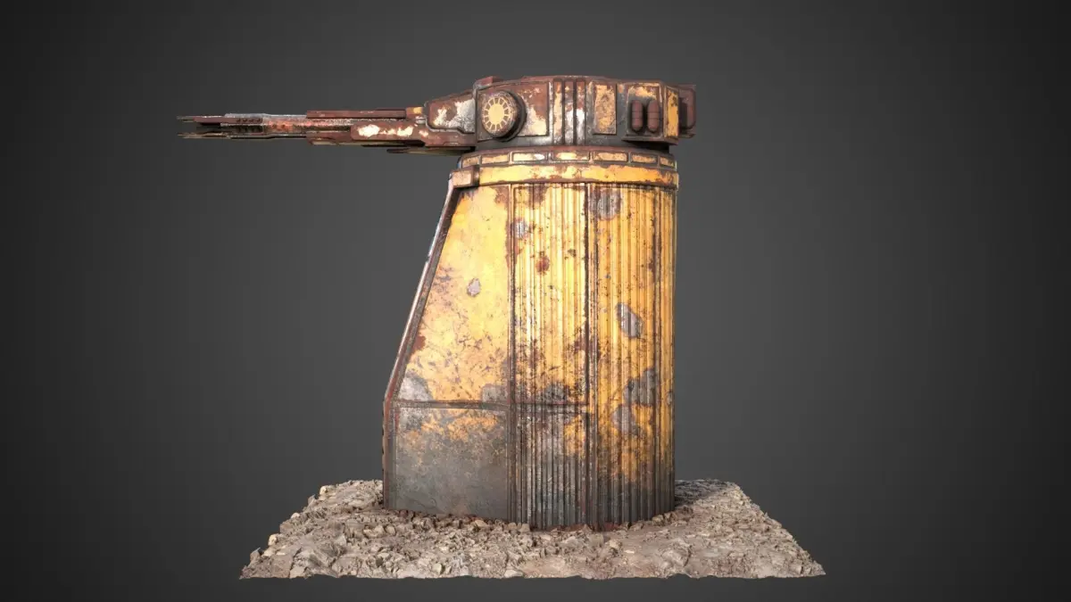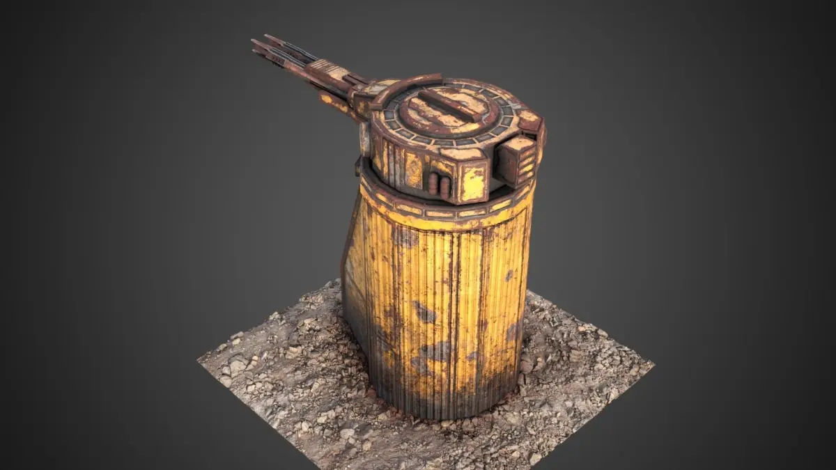 The gun tower of the Saratoga class carrier, recovered from the shipwreck, serves as a guard tower. Mounted on a 350 cm turret, it has a wide field of fire and enormous power.