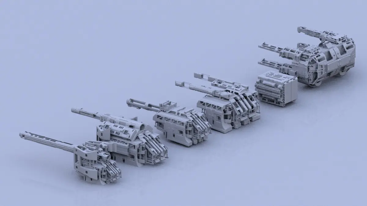 Sci-Fi Gunner Gun Turret Spaceship Military Ship Pack 3D model