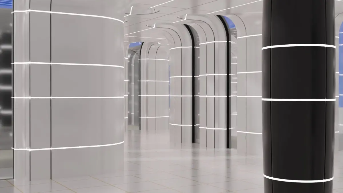 A 3D model of a Sci-Fi hall and corridor.This is a fairly high poly model so it can be used for closeups.