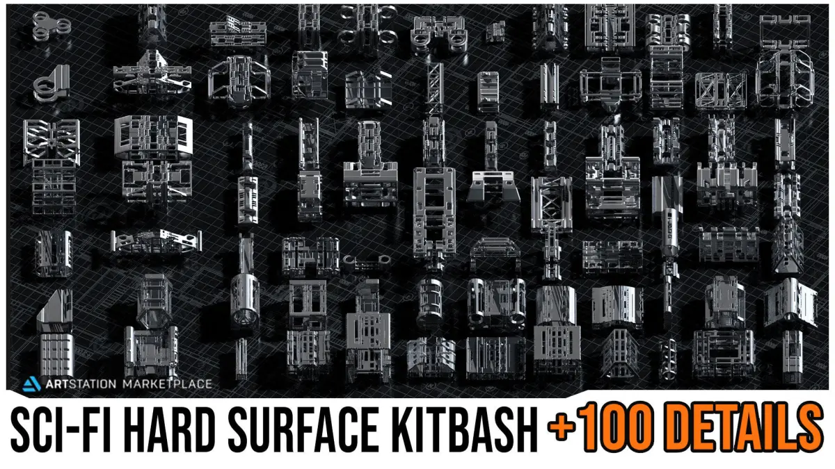Sci-Fi Hard Surface KITBASH BUNDLE 120 DETAILS 3D model