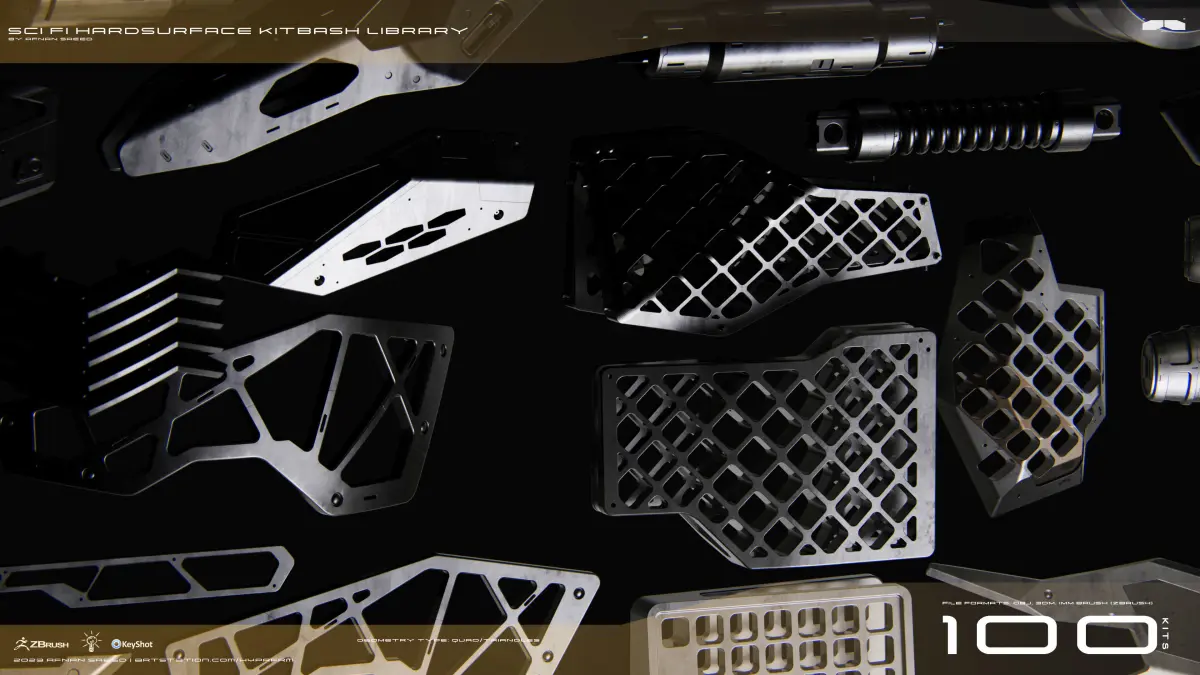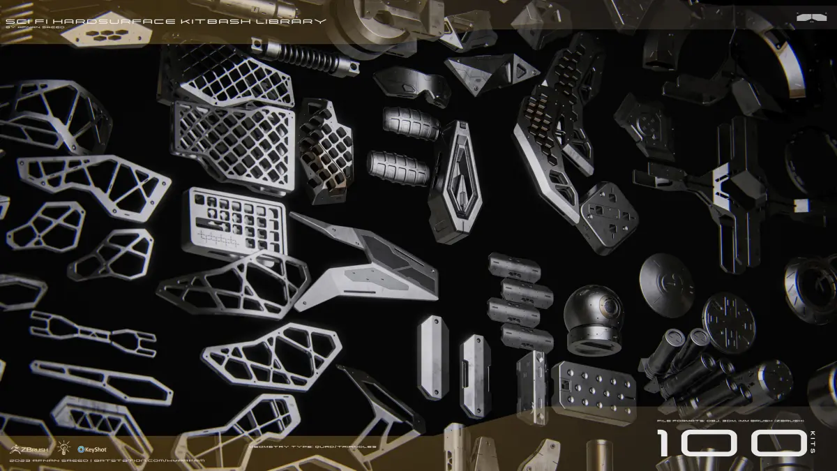 100 HIGH QUALITY ASSETS FOR HARDSURFACE DESIGN.