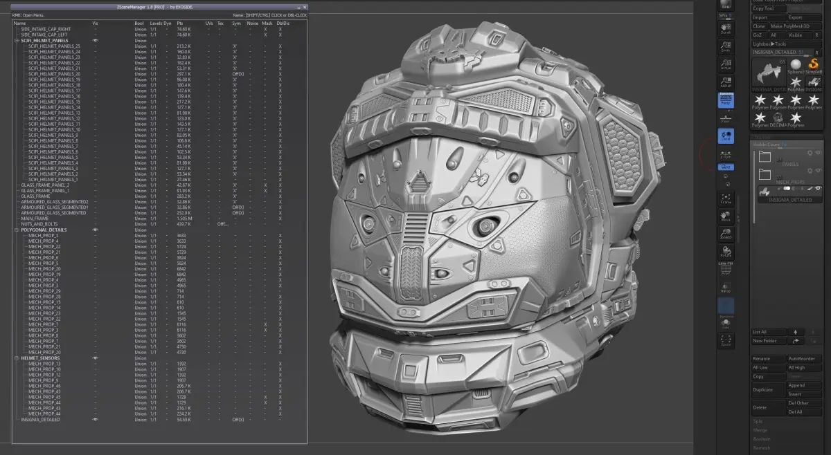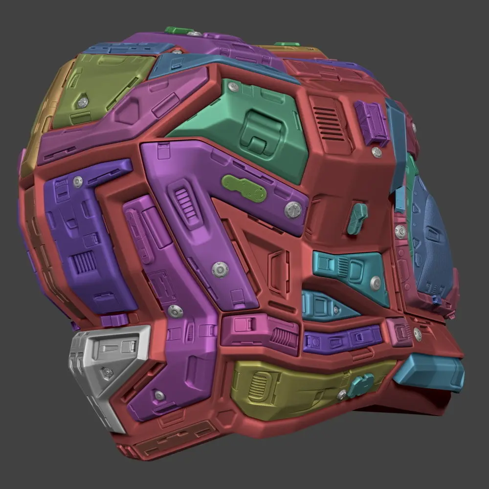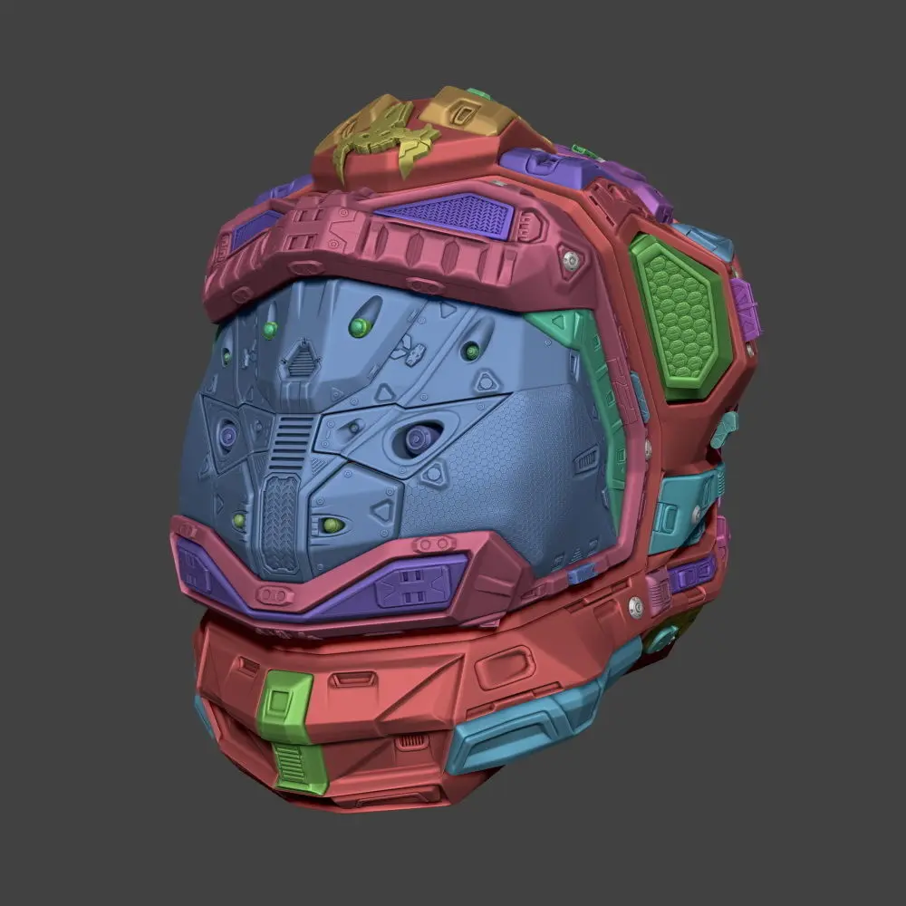 The package contains a .ZPR file with the assembly of the helmet consisted of multiple decimated subtools.