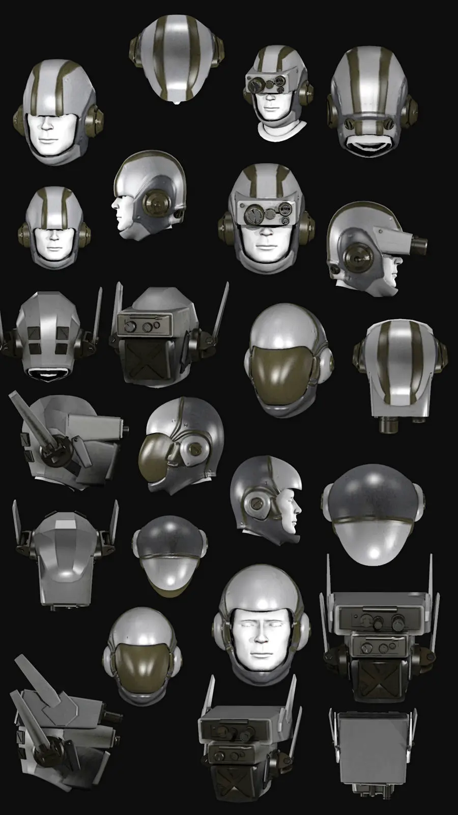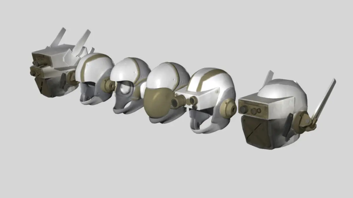 Six piece helmet prop set. Texture files are 2048 x 2048 resolution. All UV's are none overlapping.