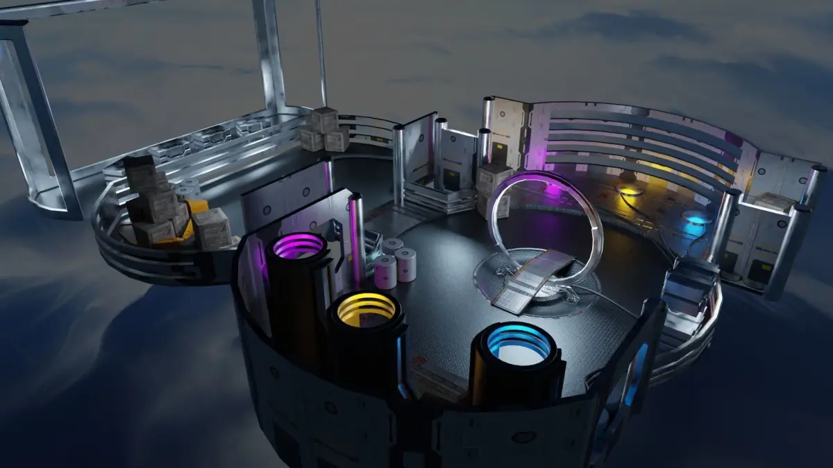 A small hideout location floating in space, a control base with portals, multiple computers and props.