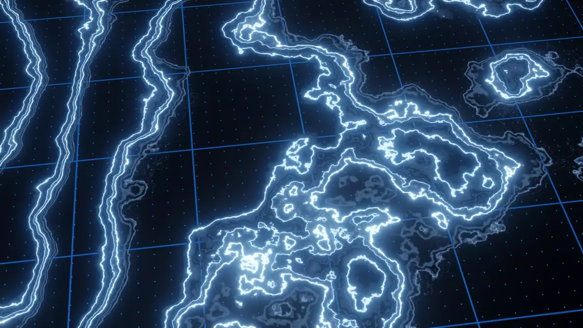 Elevate your project with this futuristic, high-tech holographic topographic map. Featuring dynamic, flowing energy contour lines over a digital coordinate grid, this asset is perfect for Sci-Fi UI/HUD interfaces, motion graphics backgrounds, or command center visualizations in films and games.