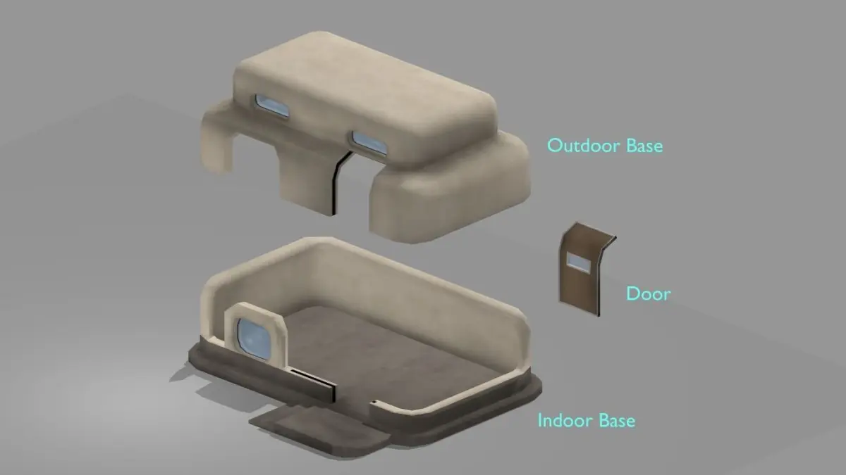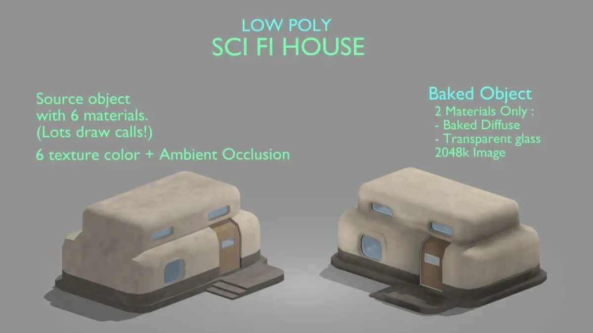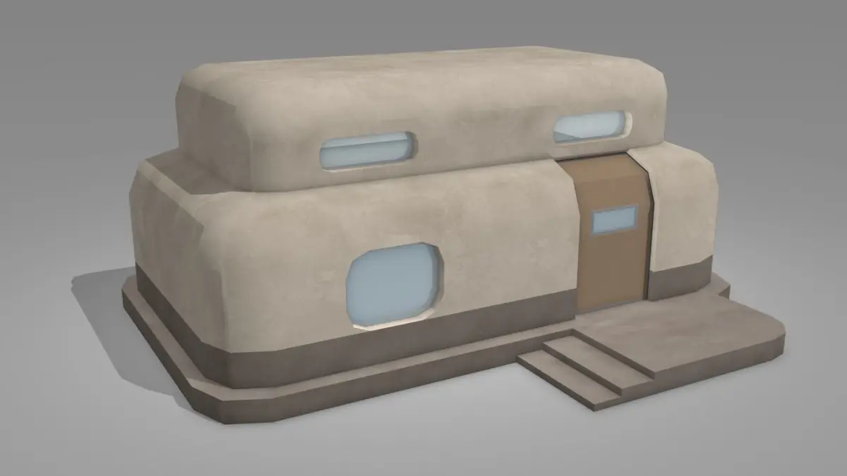 Sci fi house model. FBX files included in rar files.3 different mesh separated for indoor and outdoor usage (base, roof and door/ check preview for details).Mesh details :