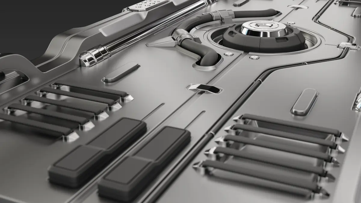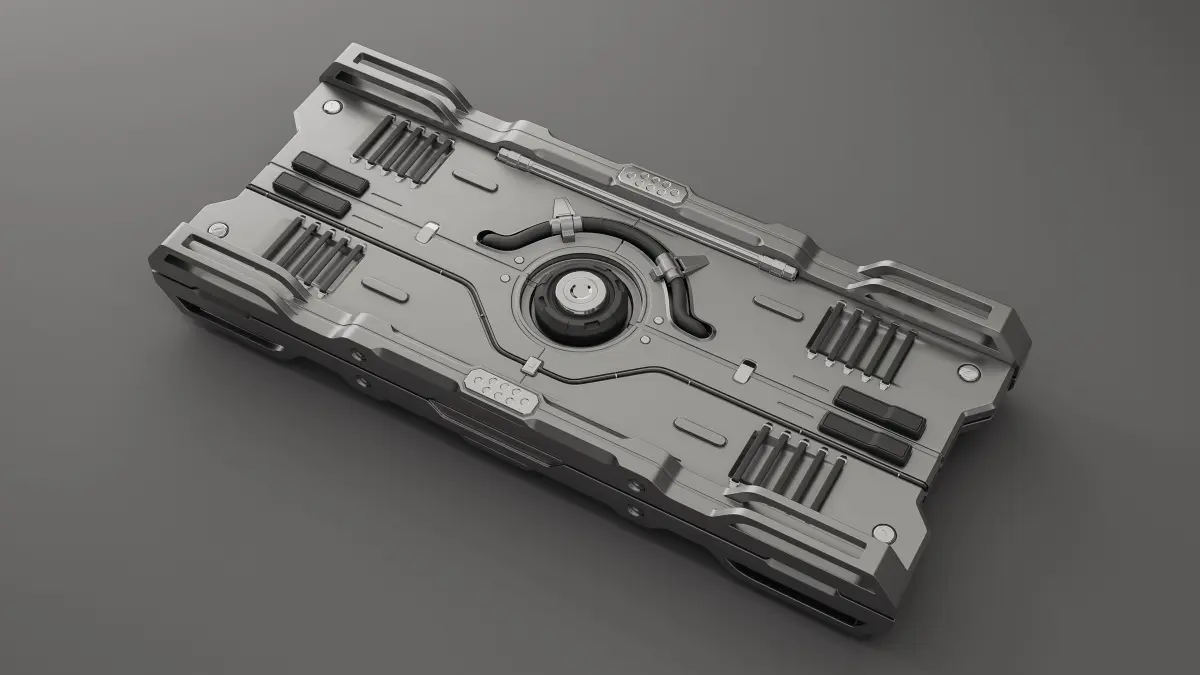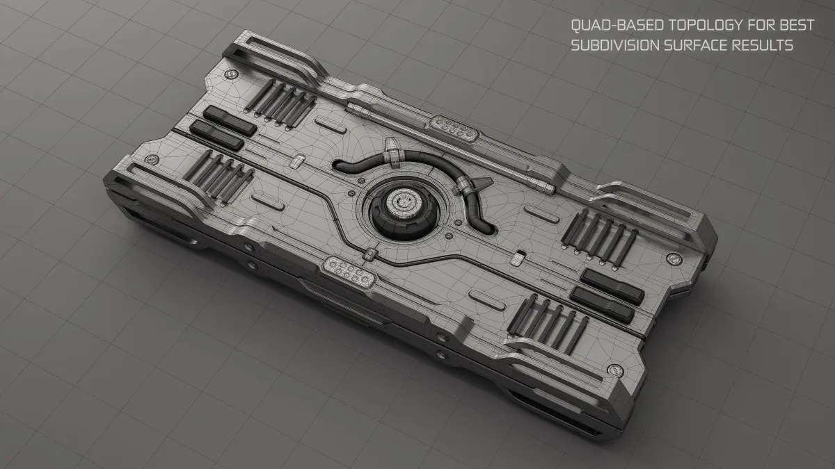 Sci-fi hard-surface machine object with proper quad-based topology for wide spectrum of usage. It might be a hero-object with subdivision modifier or background object without any modifiers. It can be used as a gigantic spaceship or small tool or weapon or part of a bigger futuristic structure.