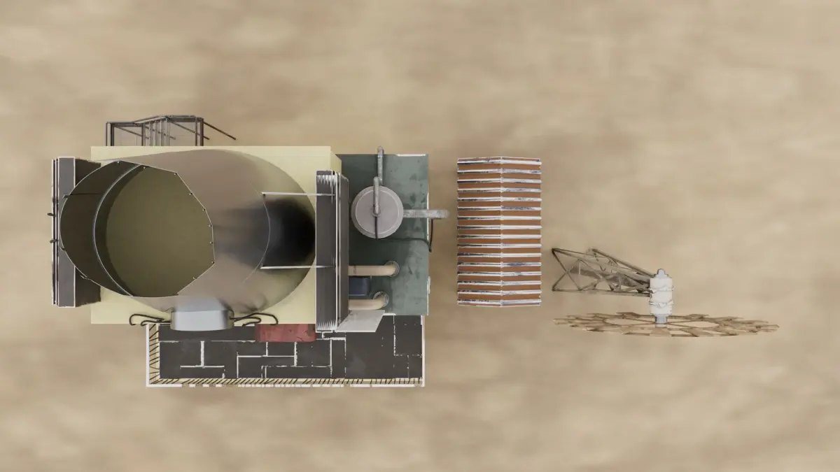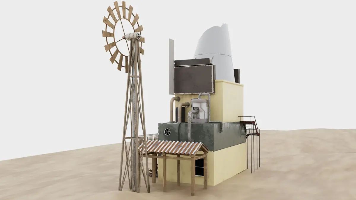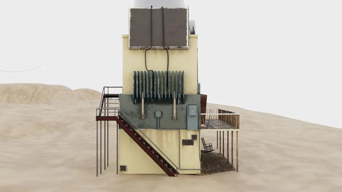 out of sacle 3D model of outdoor building on desert-Scene includes uv maps and materials ready for instant rendering