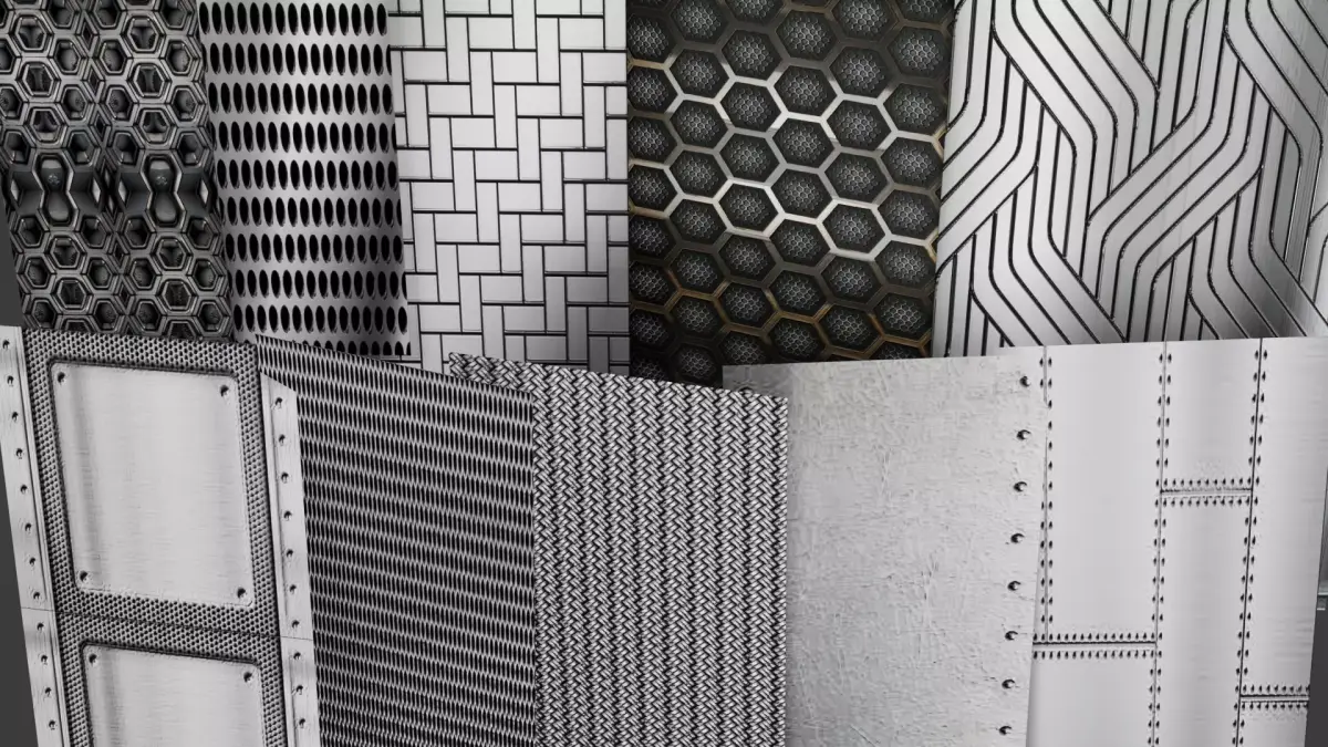 High-resolution, tileable sci-fi texturesRealistic PBR workflow for enhanced lighting and reflectionsIdeal for games, films, animations, and VR/AR applicationsSuitable for Unreal Engine, Unity, Blender, Maya, and 3ds MaxInspired by futuristic, cyberpunk, and industrial environmentsSeamless and optimized for professional useIncluded Texture StylesHexagonal metal gridsPerforated steel panelsWoven and braided metal surfacesRiveted industrial platesFuturistic geometric patternsSci-fi corridor floor panels