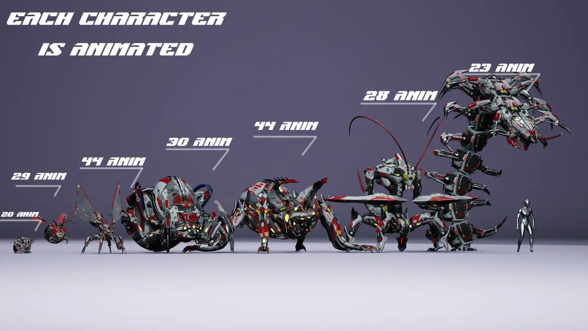 We're done working on the Insect pack - characters Pack will contain 7 game-ready charactersEach character has more than 20+ animations