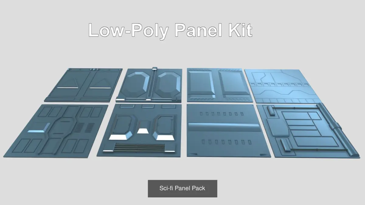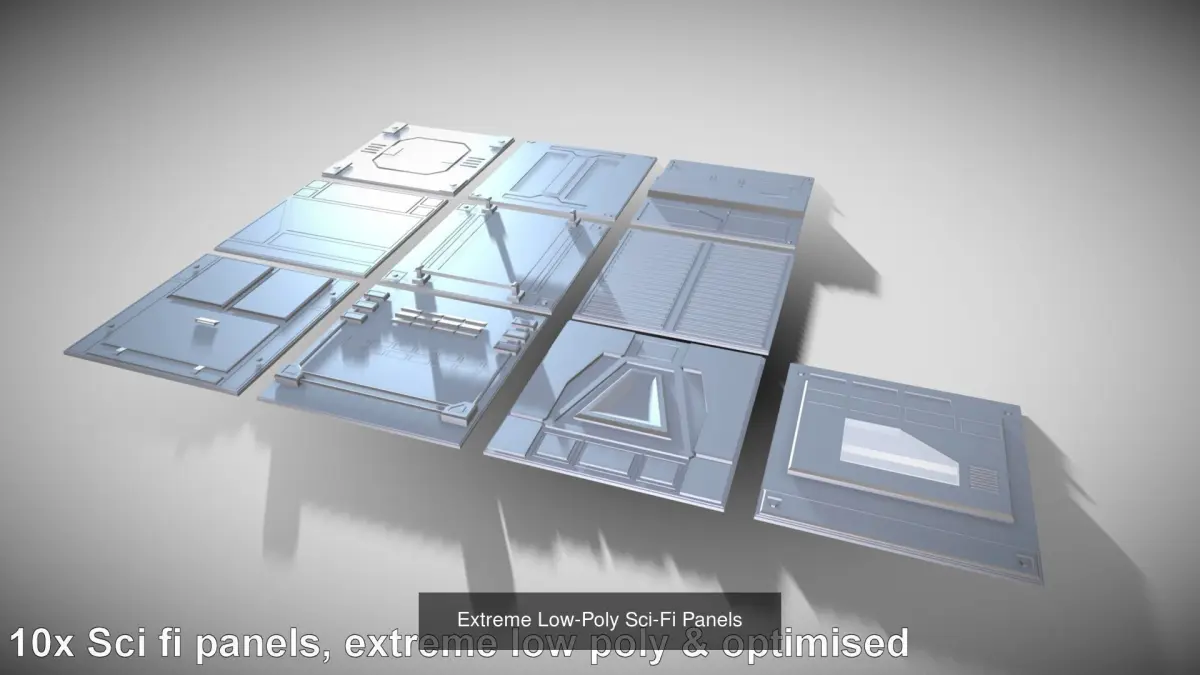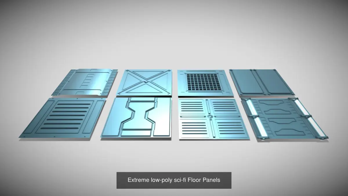 34 x low-poly sci-fi wall, floor and ceiling panels. All panels are the same size and can be joined together in any random pattern of your choosing. Includes 8 x column (quarter panels)