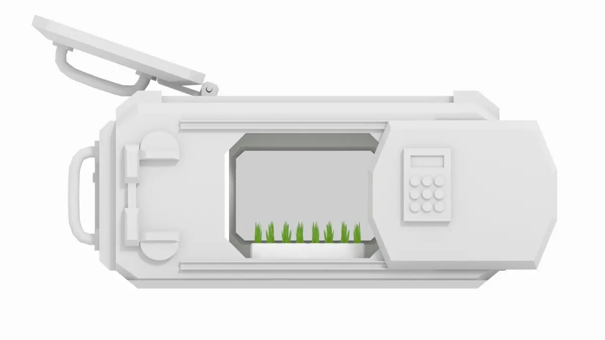 This is a Sci-Fi Lab Hydroponics Crate. Included inside is a stock plant sample, but can be swapped out for anything else. It is good fit for a science oriented setting. It has riggable knobs and doors for access in indie games or animations. Features:-Side Door with Key Pad-Top Hatch with swivel point-Control Knobs-Handles-Cargo Space-Lighting -Hydroponic Expirement -Glass View Port