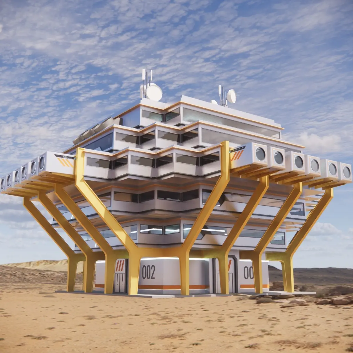 where do all resource and minerals being studied and explored? the laboratory is the answer. in the future there must be a new subtance from outer space or maybe humans will live in another planet with various kind of minerals but it must be test out first before consuming. this 3d model is a sci-fi laboratory block highly inspired by the Geisel Library,California. it is an addition to the sci-fi 002 capsule series. it is also can be attached and detached with the capsule at the forth floor. the model is highly decorated on the exterior and less detail in the interior. this 3d model is created in sketchup 2021 and rendered using enscape version 3.1 . it is recommended to use the skp file for editing. the texture is the default from the sketchup library.