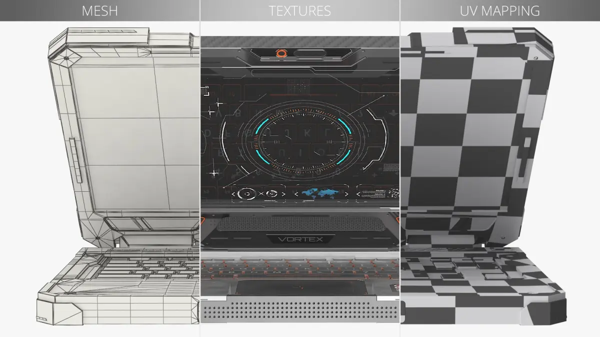 Sci-Fi Laptop is a high quality, photo real 3d model that will enhance detail and realism to any of your rendering projects. The model has a fully textured, detailed design that allows for close-up renders, and was originally modeled in 3ds Max 2020 and rendered with V-Ray. Renders have no postprocessing!