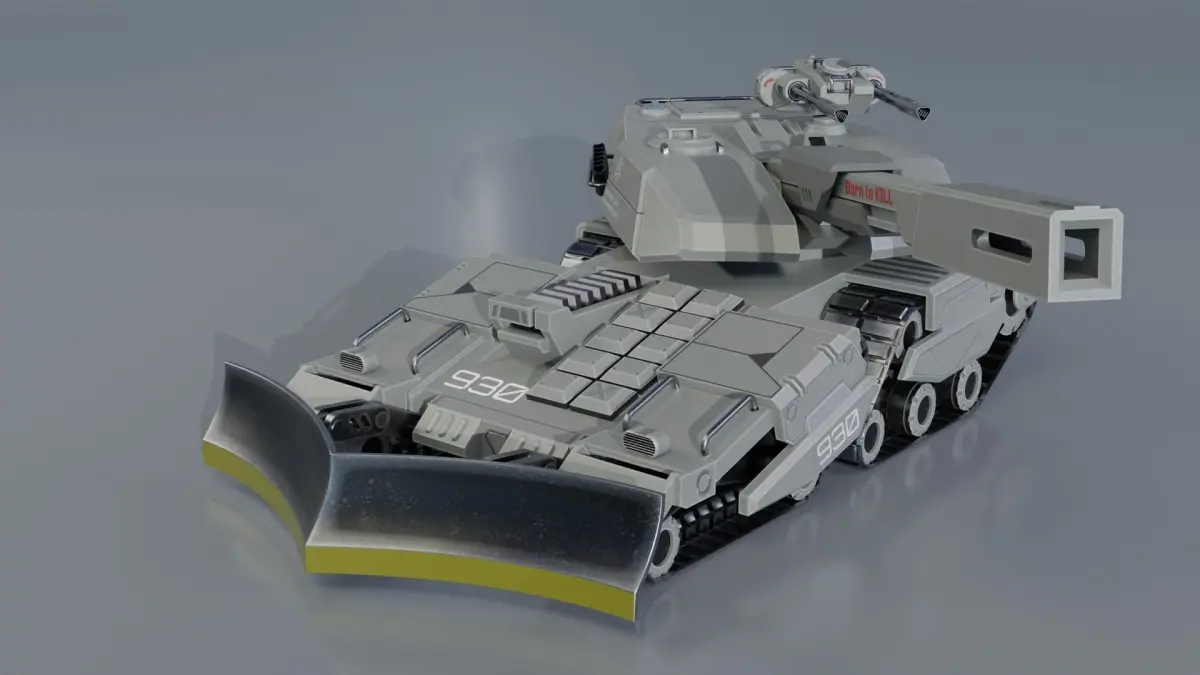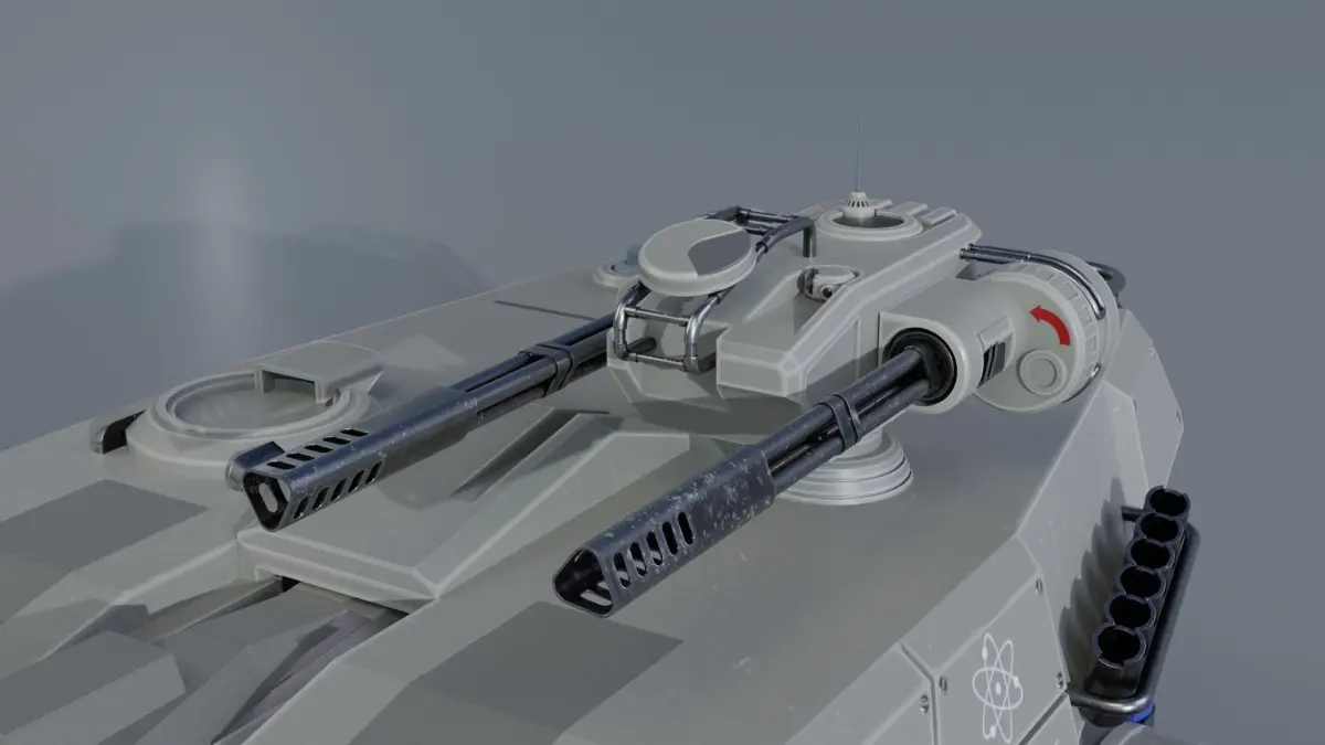 Sci-Fi Low Poly Tank GameReady 3D Model. The original model of a sci-fi tank with an anti-aircraft turret, the model is completely ready for loading into the game engine. All PBR textures in 2048*2048 extension. The model is completely ready for animation, all moving parts are made by separate elements.