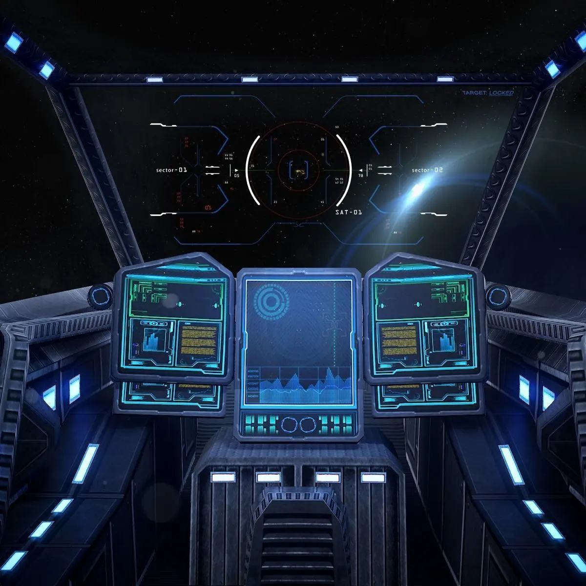 High quality low poly game and render ready model of the Sci-Fi Fighter Spaceship's Cockpit PBR. Ready for realtime scenes and game engines;
