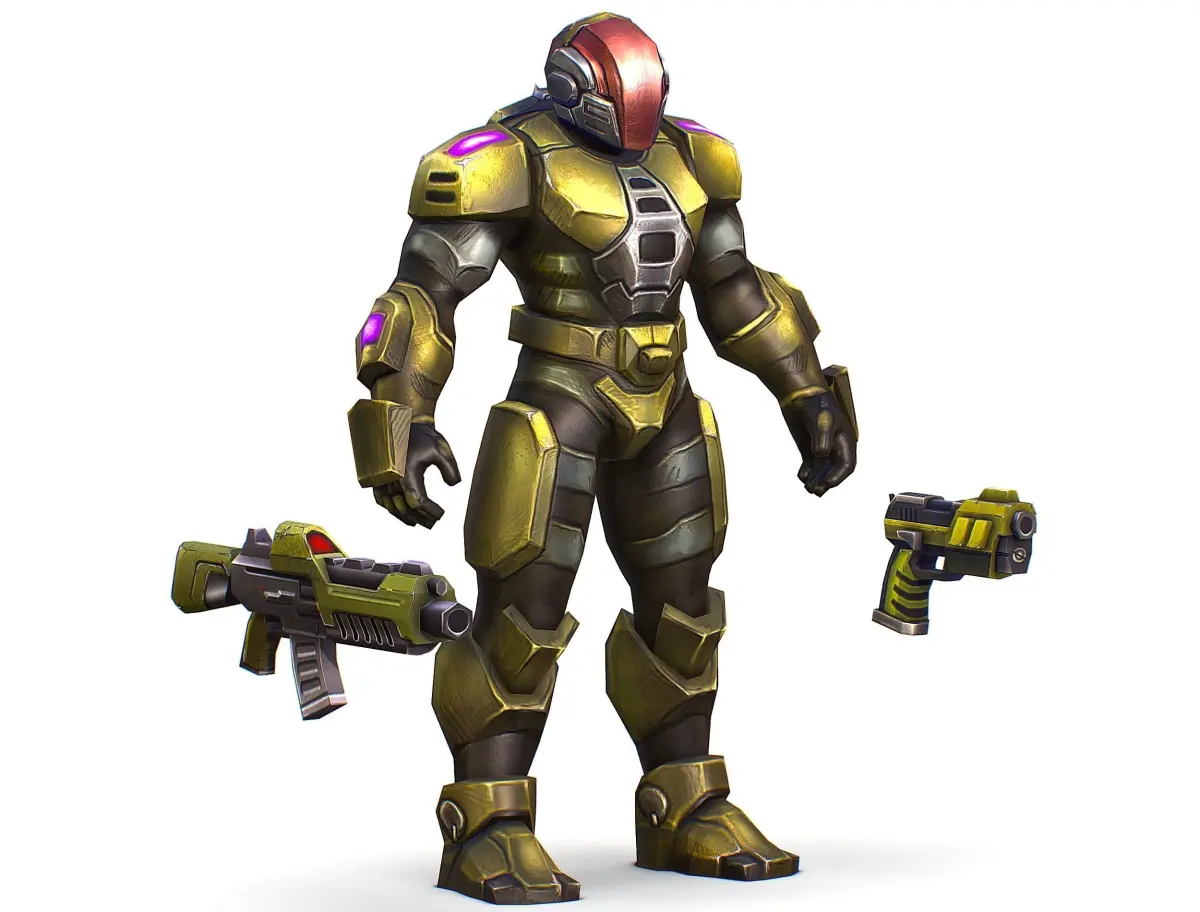 Step into the future of 3D design with our low-polygon male soldier with automatic rifle and pistol. This meticulously detailed model is the perfect blend of sci-fi aesthetics and practical functionality, ideal for game developers, animators and digital artists.