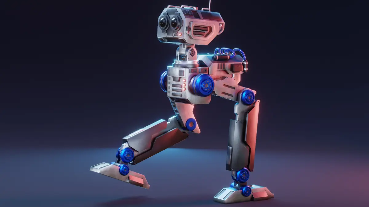 A Sci-Fi Mech Robot character, created with Blender Eevee. The model is rigged and animated.