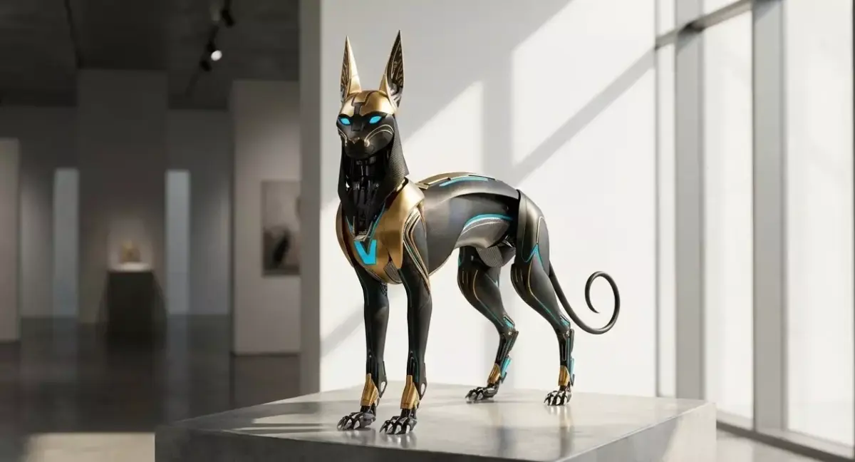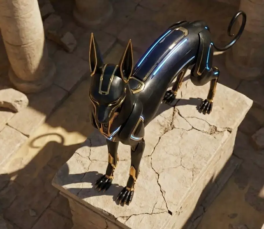 Add a touch of lethal elegance to your sci-fi world with this Sci-Fi Mecha-Bastet Statue, a sleek futuristic reimagining of the Ancient Egyptian Cat Deity. This 3D asset features an agile, carbon-fiber and gold armored body with glowing blue circuits and an articulated mechanical tail, embodying speed and stealth.