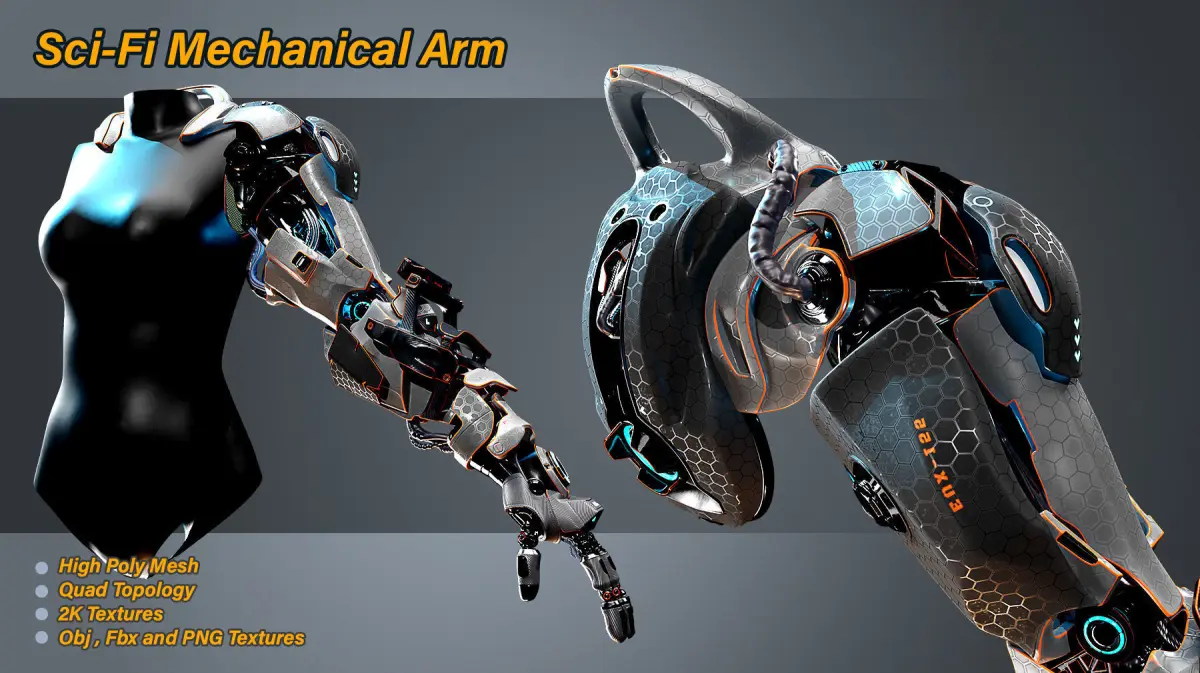 This product 3D sci-fi mechanical arm model. the model is created in high quality and based on hardsurface principles.in this pack you can find:**