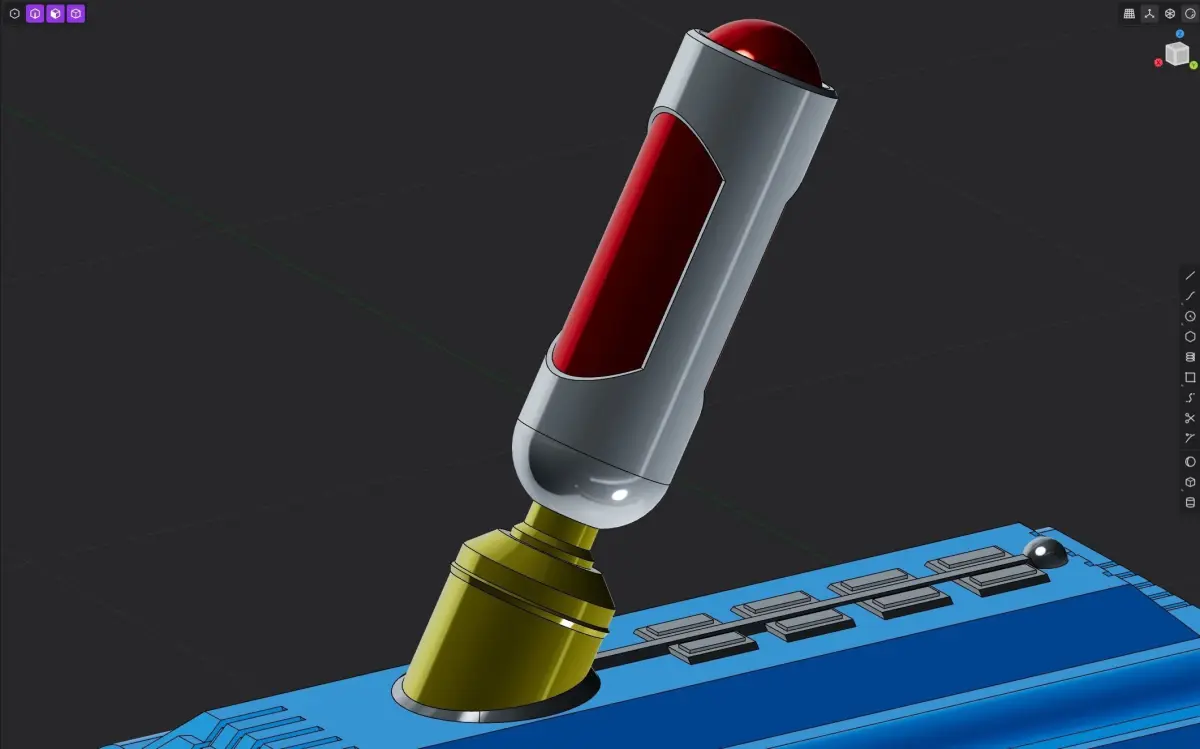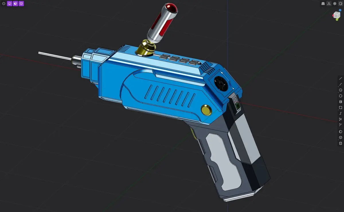Model of a sci-fi med-injector device designed in Plasticity CAD program with material painting shown in images done in software. Model features a vial port on the dorsal surface, dosing dial and safety on the rear face, and textured grip. Design is a custom build and inspired by scifi concept images and tv series. Model character used for scale in attached images is Daz3D gen9 rigged character and not included in object files. Model is printable or can be used as game or animation asset.