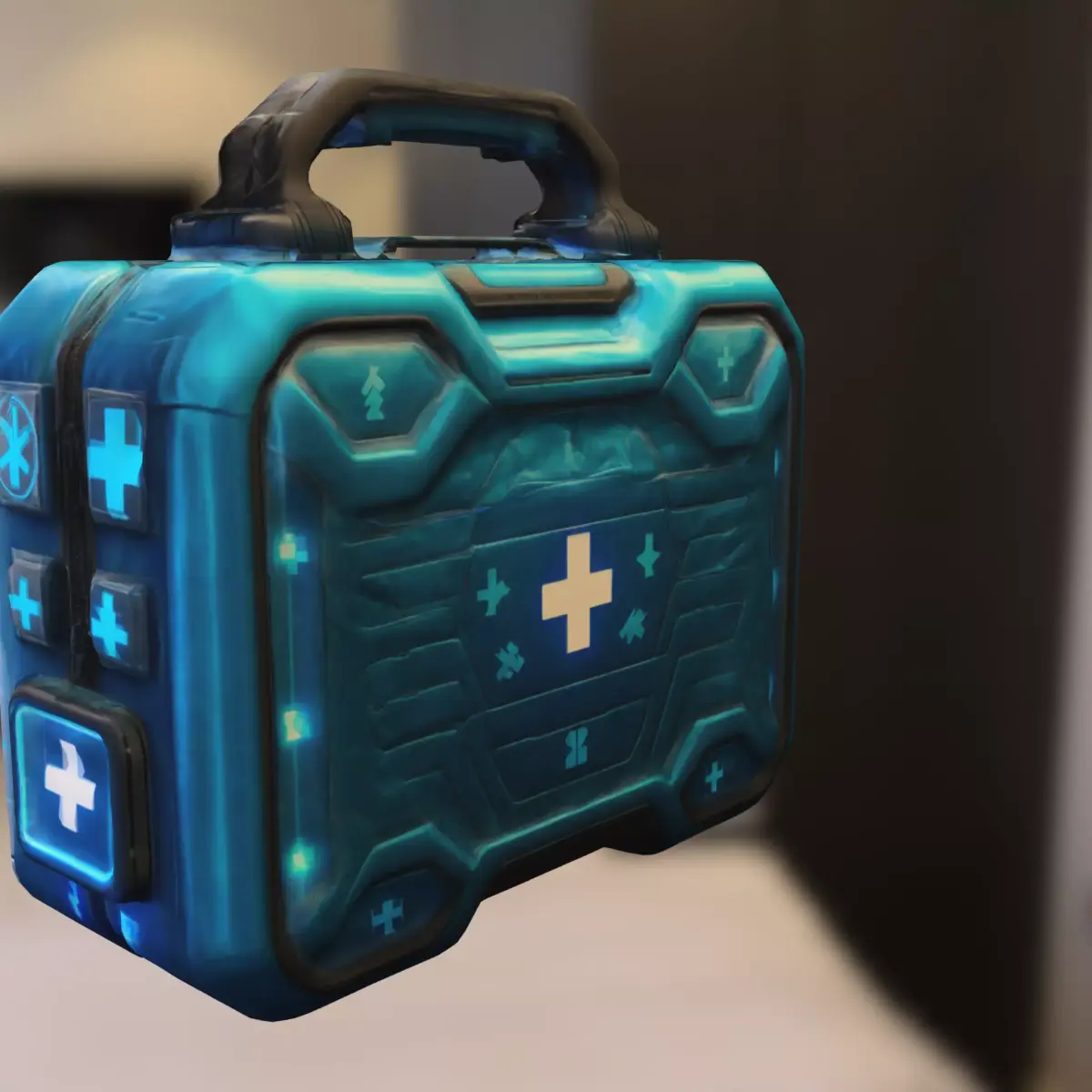 This 3D model showcases a detailed sci-fi medical kit with glowing blue highlights and a modern, tactical design. Ideal as a health pickup, medkit, or healing item in futuristic or cyberpunk-themed games. Fully optimized and compatible with leading game engines such as Unreal Engine, Unity, and Godot.