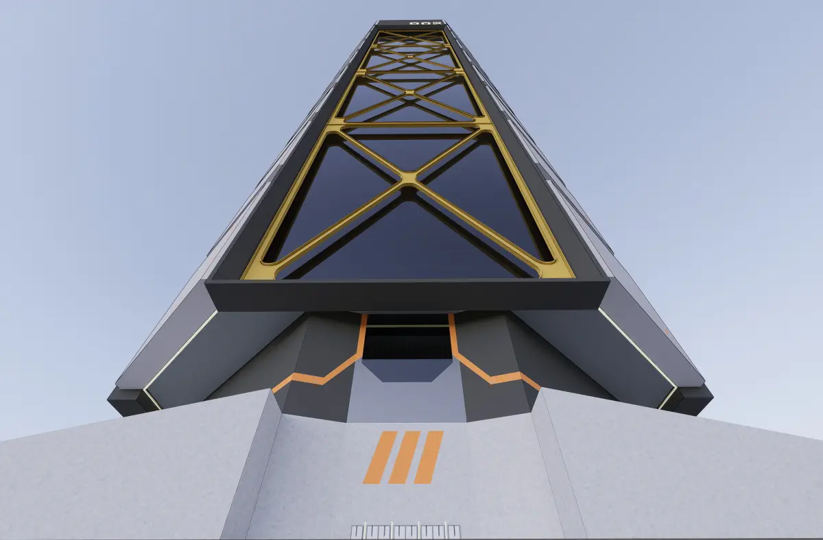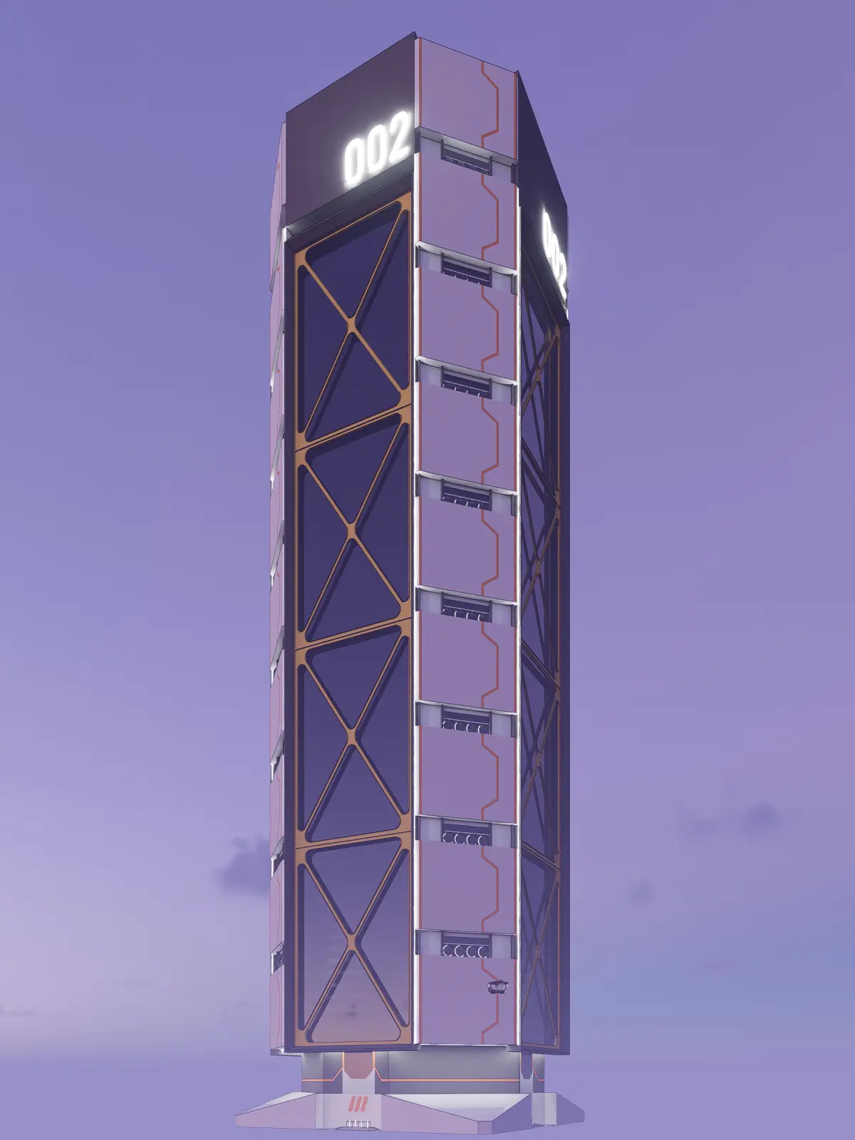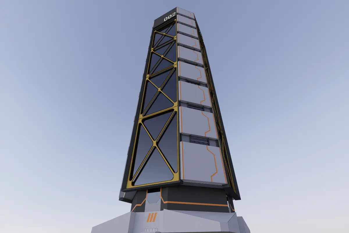 A super structure building or a mega block building with more than 80 floors act as a mixed use building with commercials, residentials and industry under one roof. This 3D model is an icon skyscraper with large brutalist ACP facade and steel bracing and cantilevered from the middle core in the futuristic backdrop. It is an addition to the sci-fi 002 series as one of the landmarks. The 3d model is highly decorated on the exterior and less detail in the interior suits as a monument to the city. This 3d model is created in sketchup 2021 and rendered using D5 version 2.6.1 with a real world scale (scale 1:1). It is recommended to use the skp file format for editing due to its native file and the texture is the default from the sketchup library.
