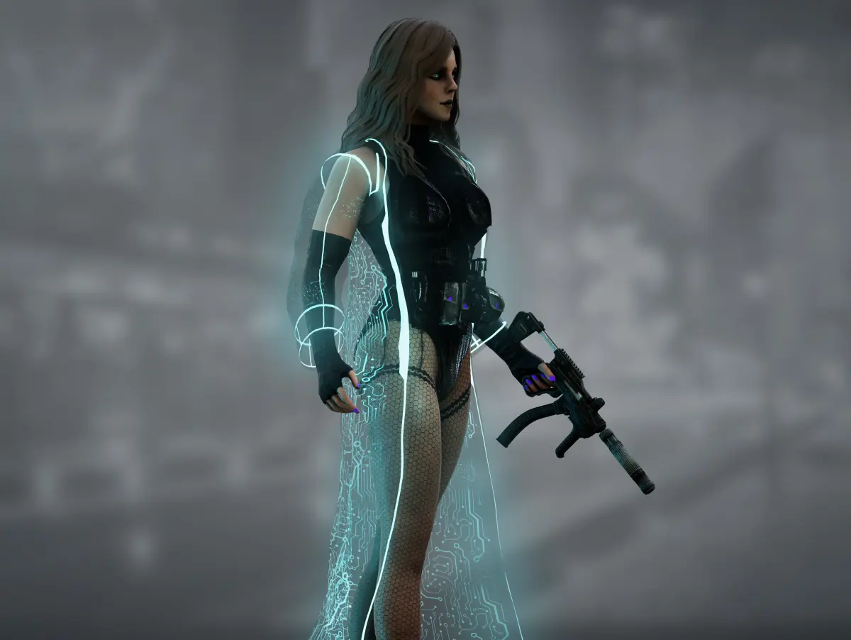 Detailed low poly 3D character Sci Fi Mercenary Girl