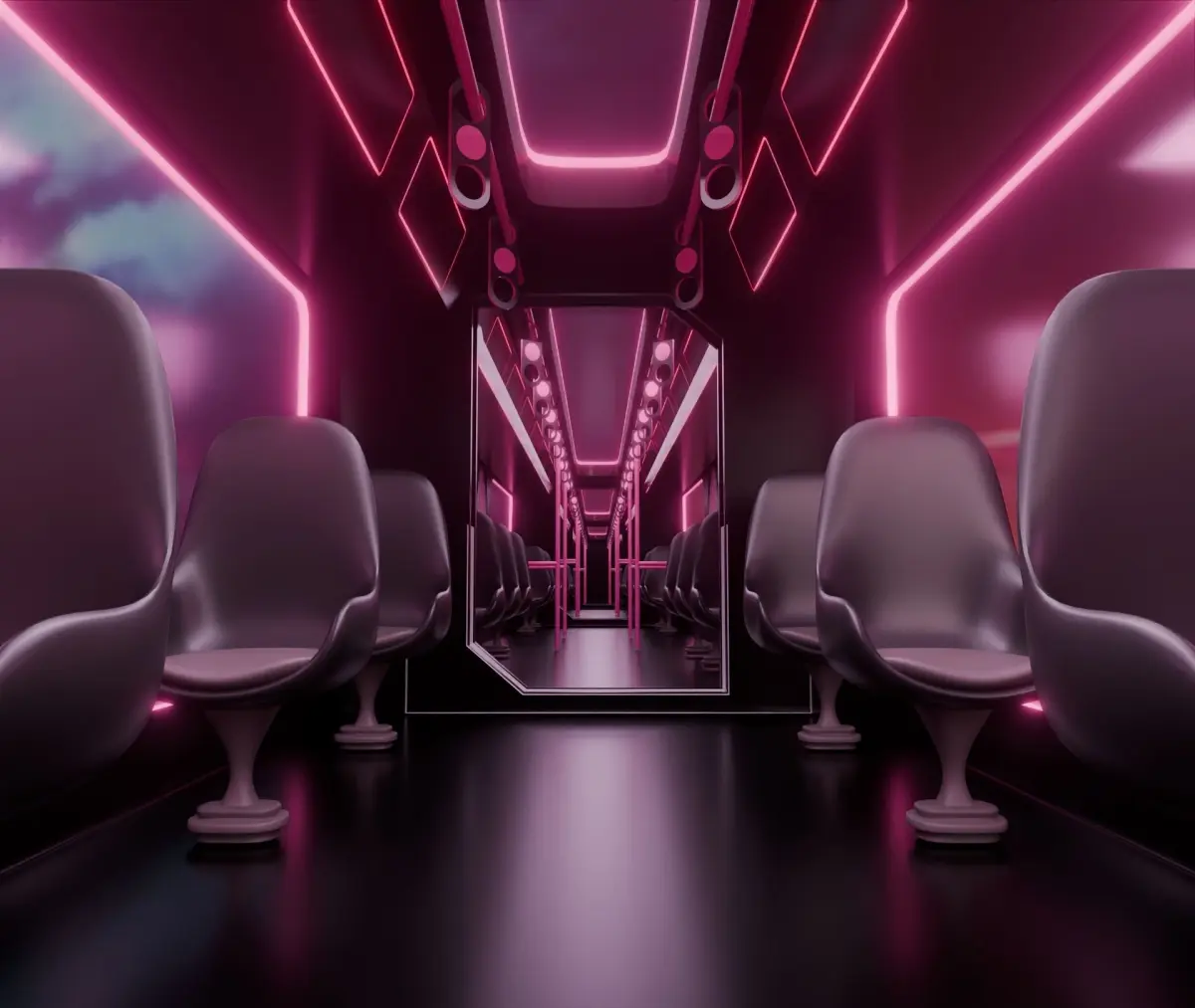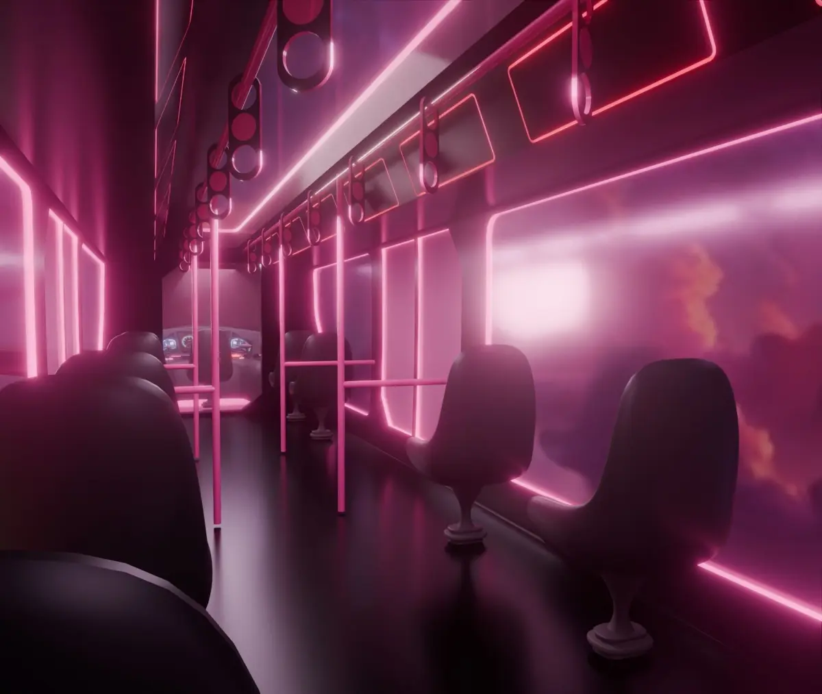 Model of sci-fi metro train with exterior and interior modeled in detail.