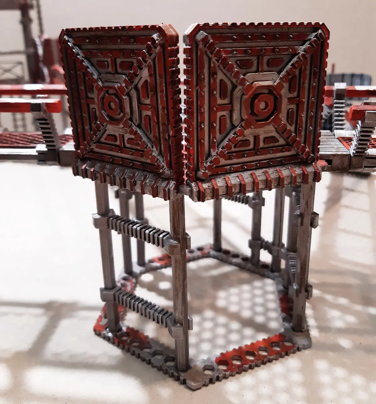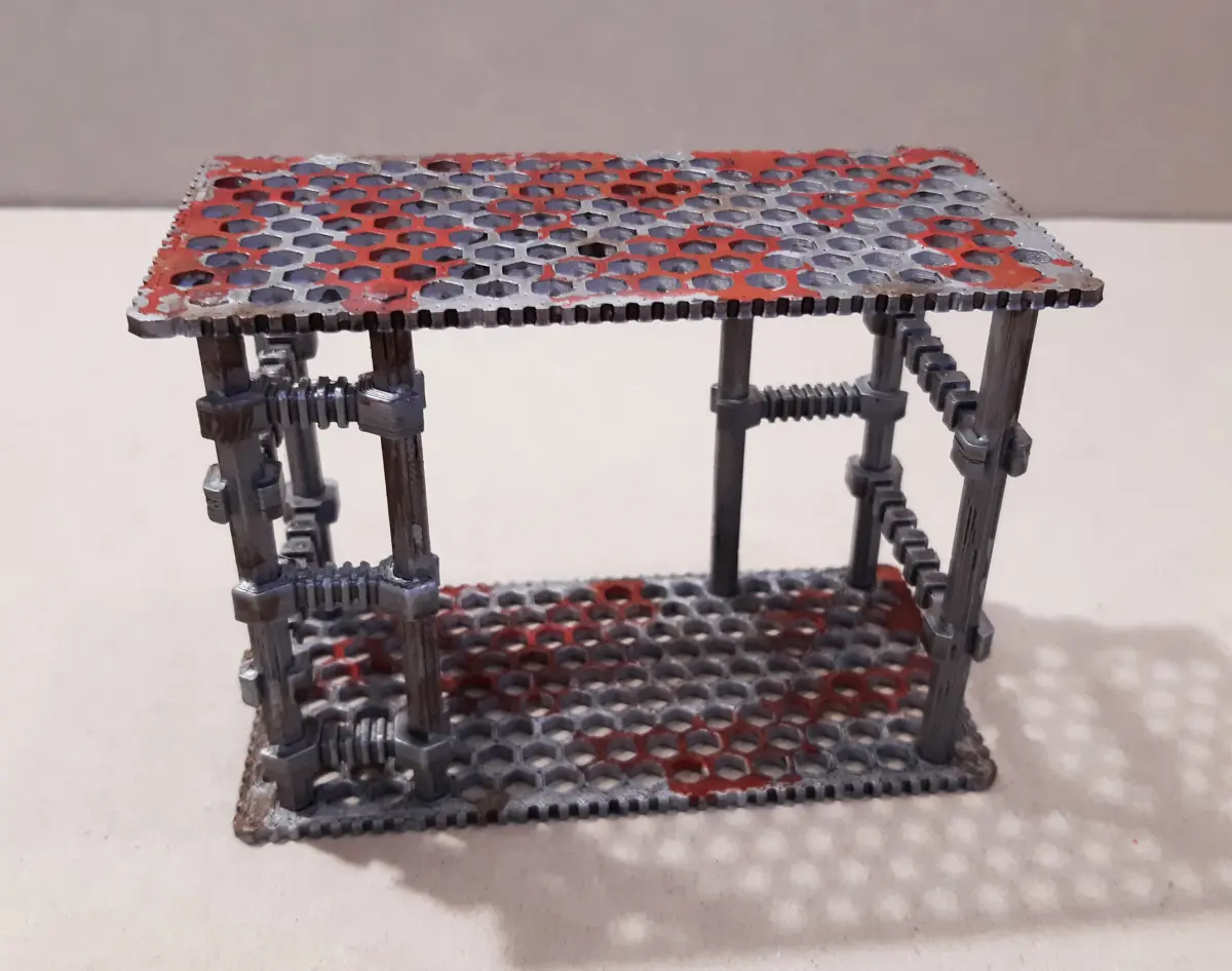 Hi,I would like to introduce you to my modular set of terrains for wargaming games such as warhammer, necromunda, etc. The primary scale is for 28 mm figures.The set is one large kit, from which you can assemble towers of different shapes, sizes and different heights.These towers can be connected by sidewalks of various lengths. Stairs and ladders, barricades, railings are also available.Various railings and barricades can be attached to the platforms. You can click without gluing.So, you can build any kind of buildings. There are also various connecting elements in the kit.These elements (“arm”) can be snapped on without the need for gluing and can be snapped after play. I named this non-glued joint the Hex-Holder system.