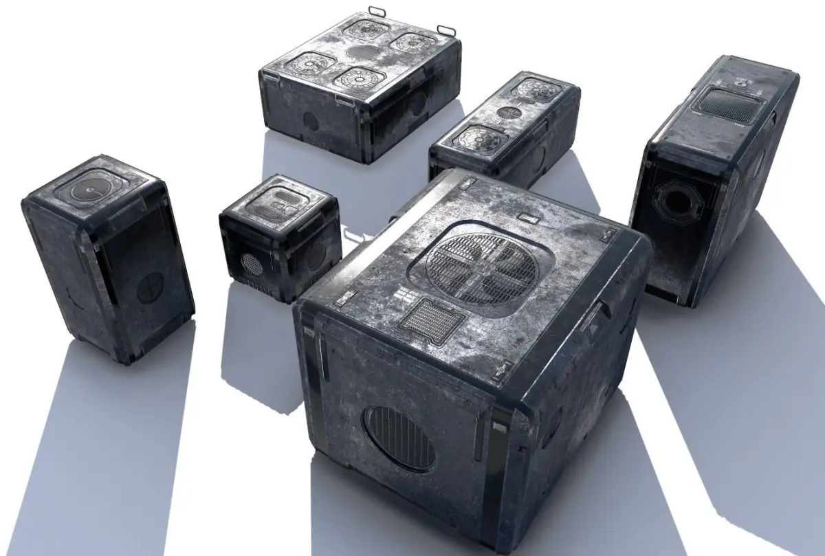6 Futuristic cargo/storage crate suitable for science fiction or futuristic themes. It comes with 4096pix PBR textures including: Albedo , AO, Displacement , Metalness, Normal, Roughness. Separate meshes included and also all in one file (FBX,3DS,OBJ)