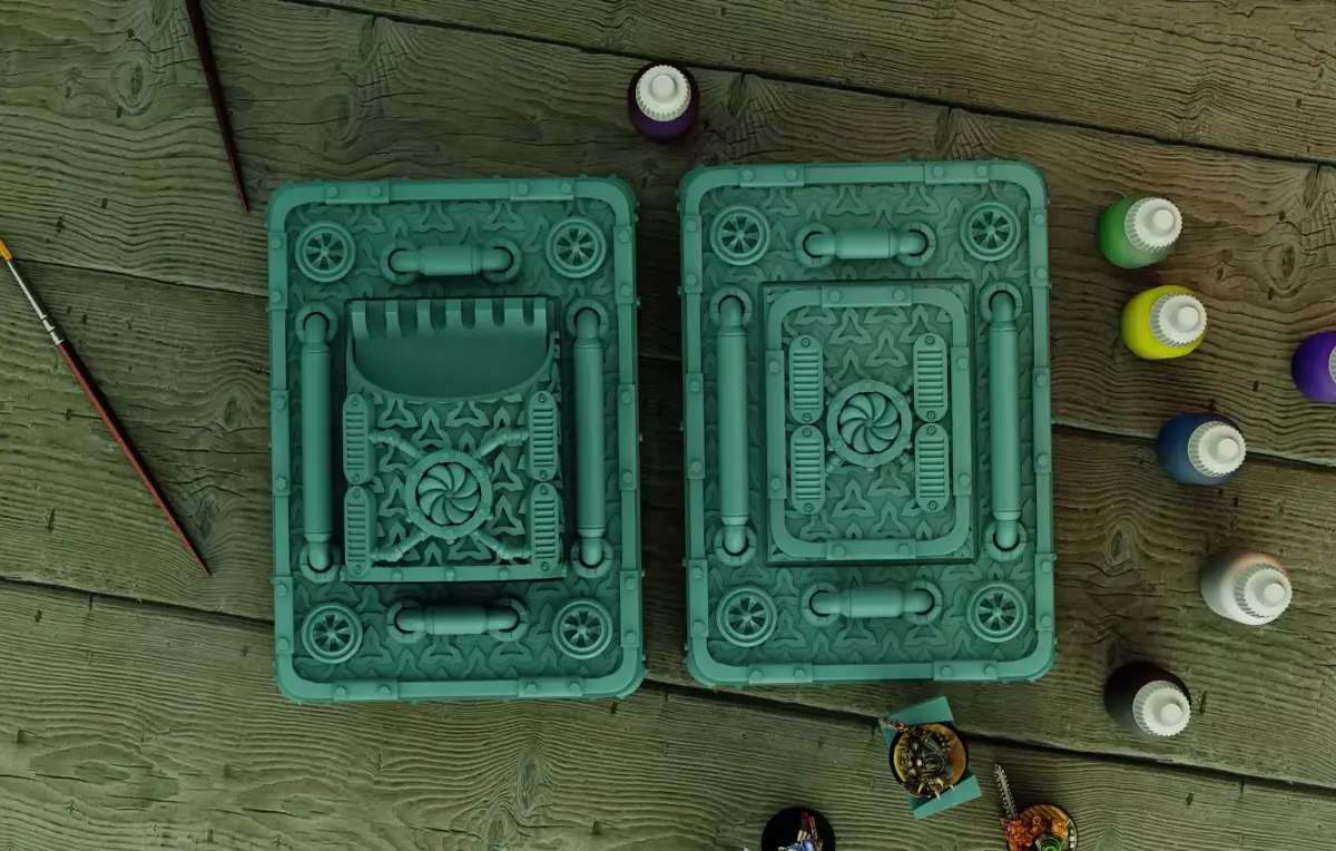 Small textured panels for applying paint using the dry brush technique.Small bowls for preparing washes.A stand for holding the miniature while painting. The structure is interlocking and has an extension so that it can be stored inside the box.An internal compartment divides the various areas, which you can remove during use for convenience or to clean everything.Or don't insert it if you want a simple box.A place to safely store your brushes.Finally, our special water jar.