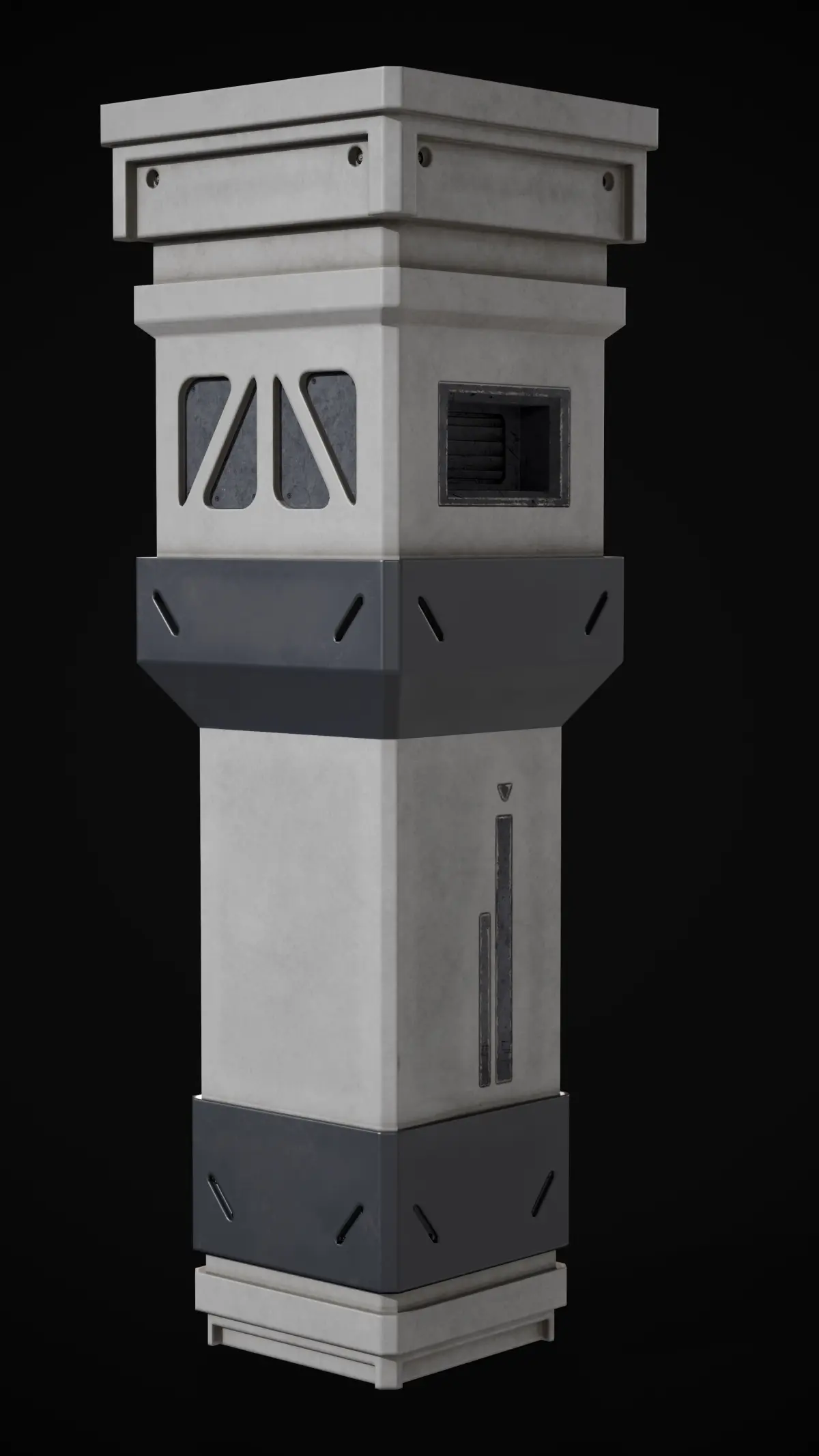 Sci-Fi Pilar Made in Blender with box cutter and hard ops. Dimensions: 1.62 m x1.62 m x 5 m .Included:Blender file with packed texturesSubstance Painter file for texture adjusting. .Stl format model.Fbx format model.Obj format model