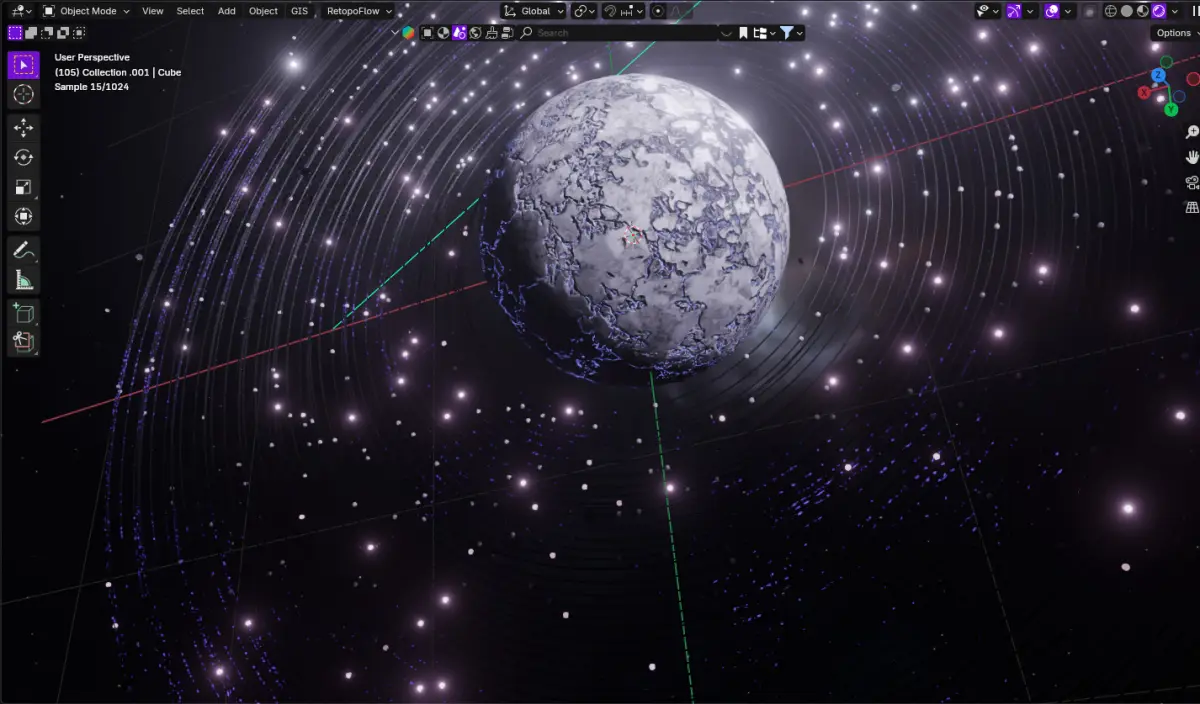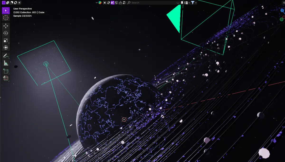 This mesmerizing sci-fi animation showcases a celestial body with a cracked surface, surrounded by glowing particle rings, creating a stunning cosmic effect. The planet’s blue fissures and vibrant energy field give it a futuristic and mysterious aura, making it perfect for space-themed animations, visual effects, and digital storytelling. Designed using Blender’s Geometry Nodes, this procedural animation offers dynamic movement and realistic space aesthetics, ideal for cinematic projects and sci-fi world-building.