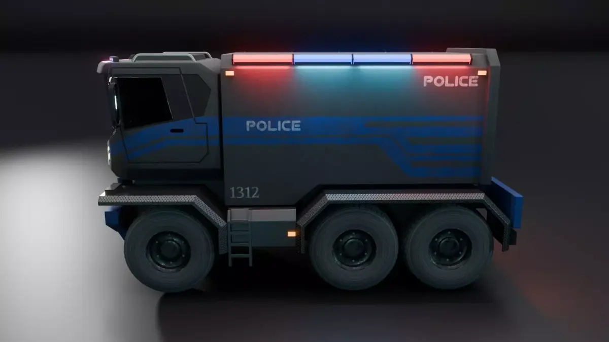This is the 3D model of Sci-Fi Police Truck.This 3d model is made with Blender 4.4 version.All the previews are rendered with CYCLES render engine.(Can be used in EEVEE also)The sci-Fi Police truck 3d model is textured with PBR texture.All the texture are attached with this pack.(4096 x 4096)The wheels are separate object, can be animated.This is a game ready model, ready for game engine.