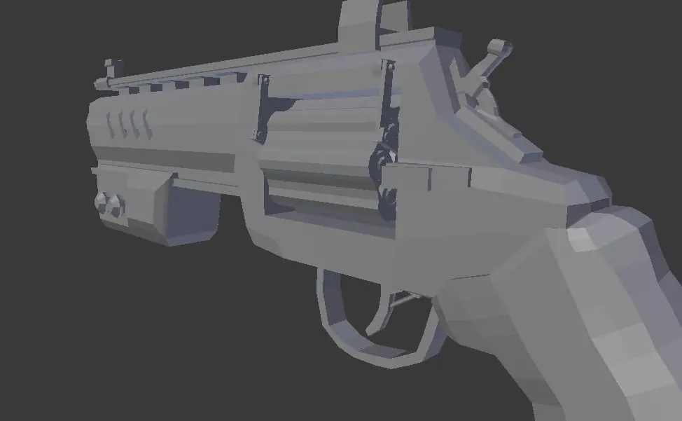 The revolver has a sci-fi look to it, can also be used in a post-apocalyptic world/setting where the guns are altered/repaired in a makeshit way. It is however inspired by/similar to a normal revolver in many ways.