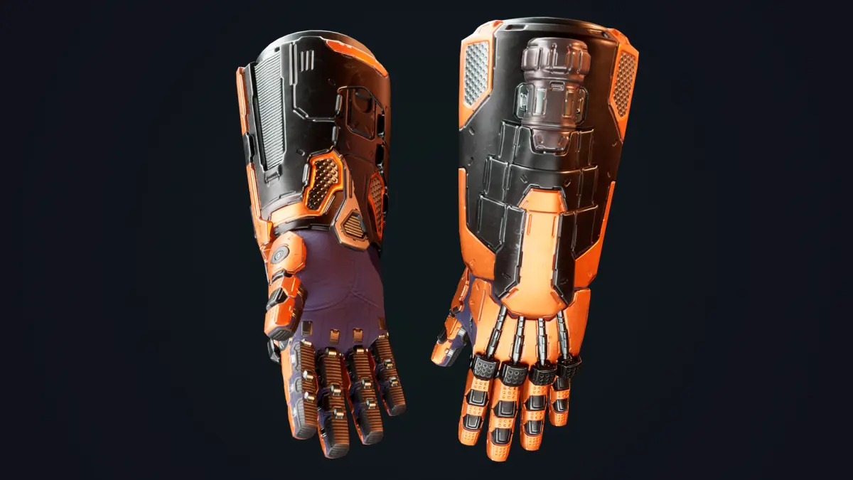 Realistic rigged 3d model of sci-fi power gloves.