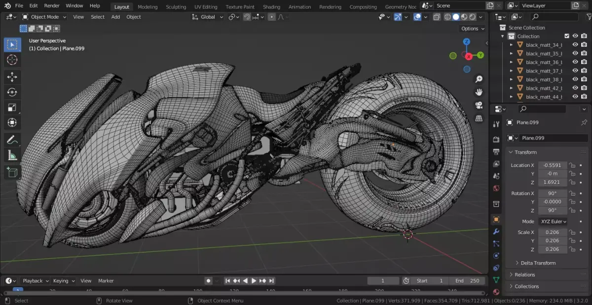 -Sci-fi motorbike made in blender 3.2-Both interior engine and exterior body-Hologram handle concept is left to the user to explore.-No textures but only specific Js placement height and normal map.-Images available for reference texturing-OBJ and FBX files available