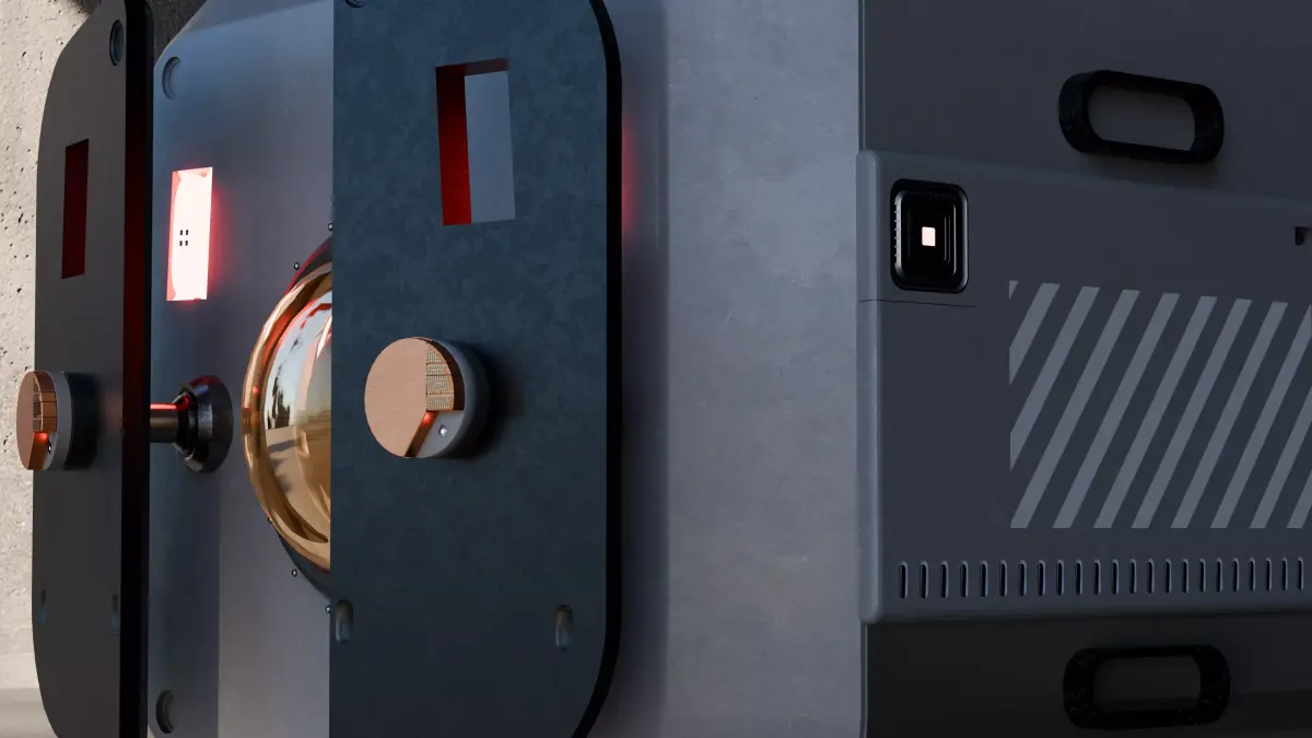High quality sci‑fi sensor pod 3D model designed as a compact, cube‑shaped hard‑surface prop for games, cinematics, and concept art. The asset features a detailed front sensor array with lens, modular side panels, handles, vents, and recessed panels suitable for decals and UI elements. Clean topology and separated parts make it easy to rig as a drone, mount under ships or vehicles, or use as a stand‑alone scanner unit in environments and VFX shots.